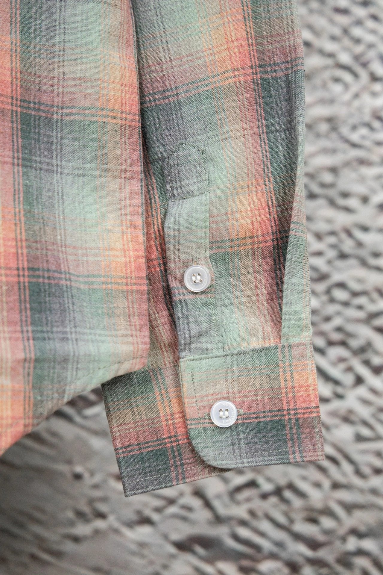 Top version! Fabric made of yarn-dyed 200g 9s x 9s double-sided brushed material. Purely handmade infrared positioning cutting. Pocket, access control, collar, cuffs with precise stitching. Inner edging technique. Custom deep sea shell buttons. Custom accessories