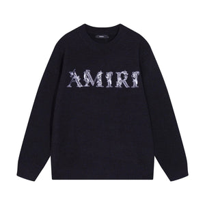 Amiri Hoodie 2024Autumn and Winter New Chest LOGO Embroidered Knitted Sweater for Men and Women