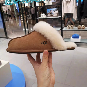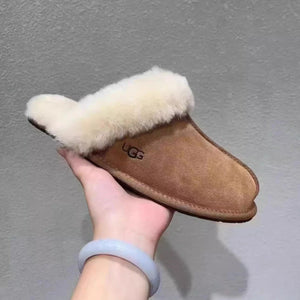 UGG Slippers 2024Autumn and Winter New Women's Toe-Covered Slippers Warm Leisure Furry Home Thin Bottom Slippers