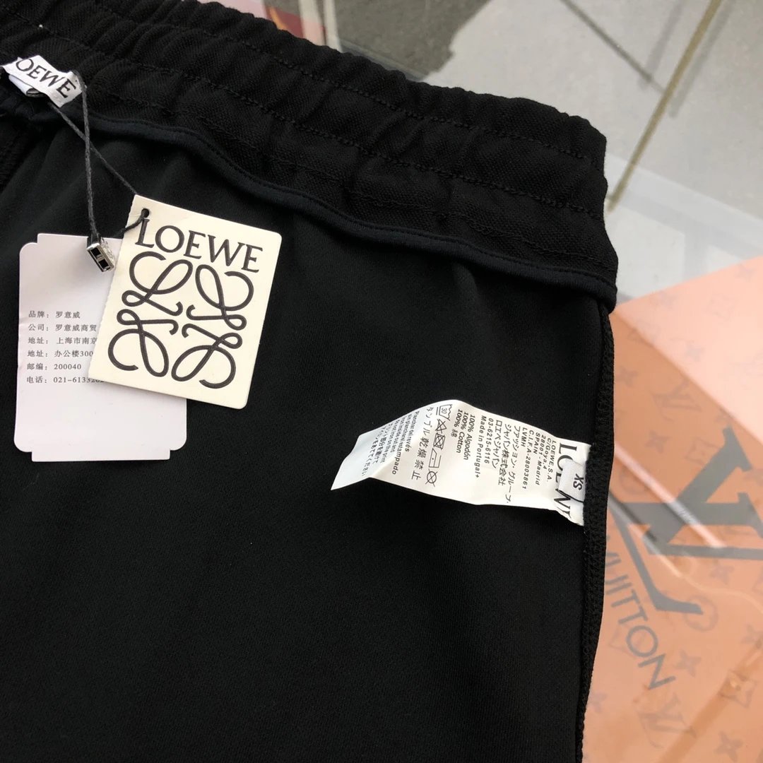 LOEWE Sweatpants 2024ss New Veneer LOGO Drawstring Jogger Sweatpants for Men and Women, Autumn and Winter Loose Fit, High Waist, Color Block, Plus Size, Casual Pants