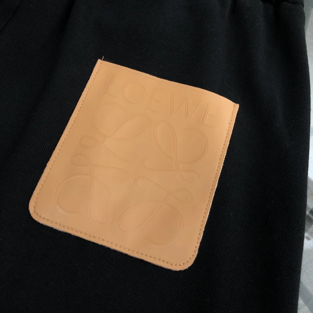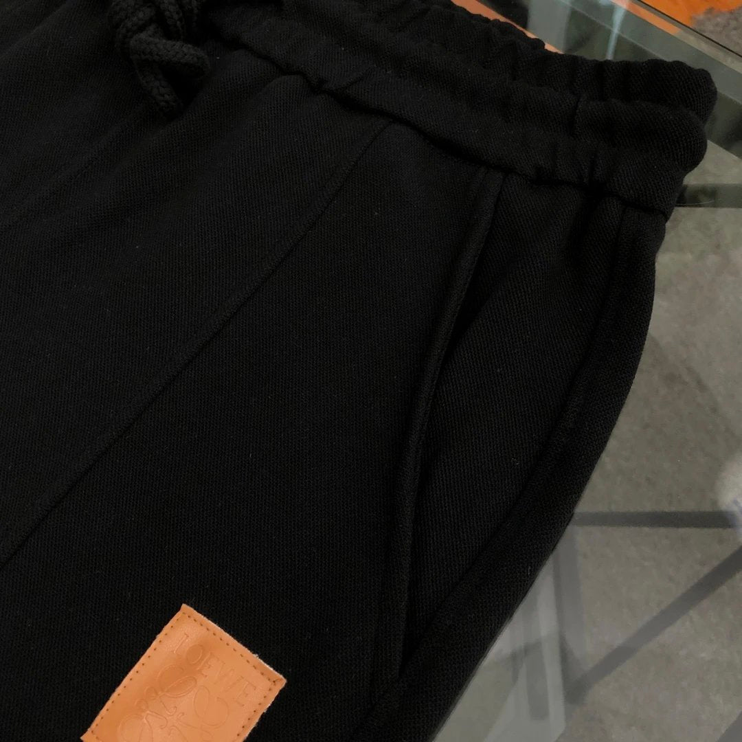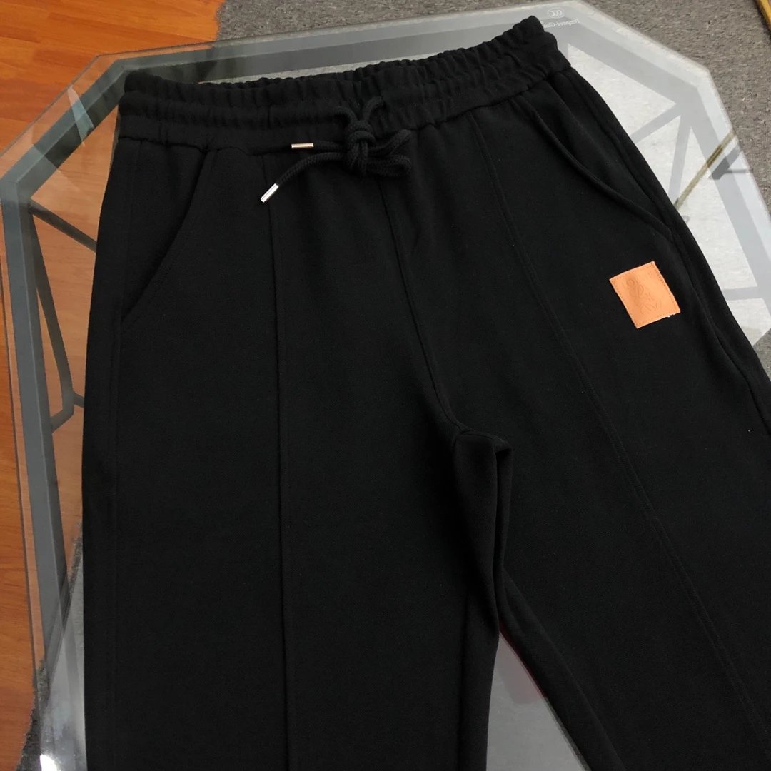 Loewe 2024SS New Leather Patch Logo Jogger Sweatpants Autumn Unisex Long Pants Drawstring Winter Loose Plus Size Casual Pants High Waist Color Block