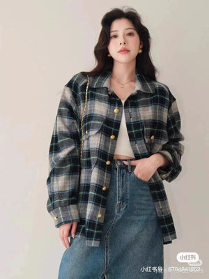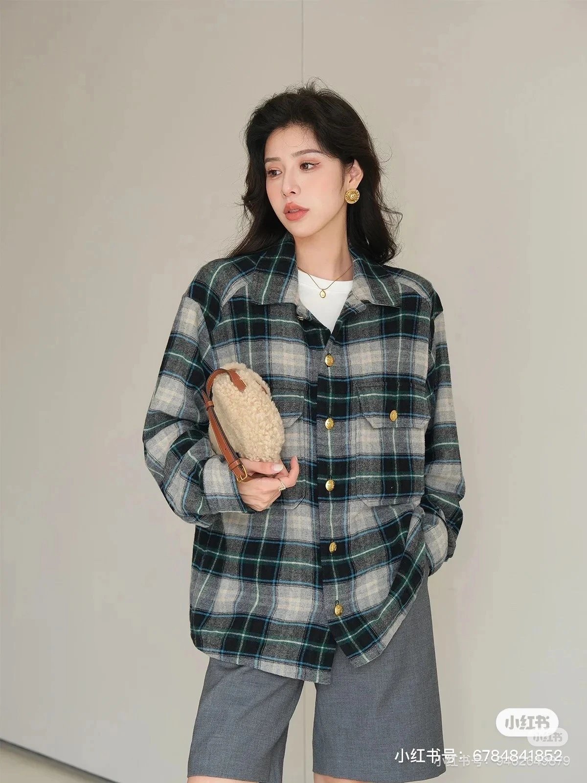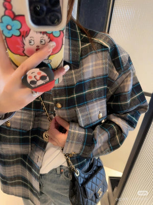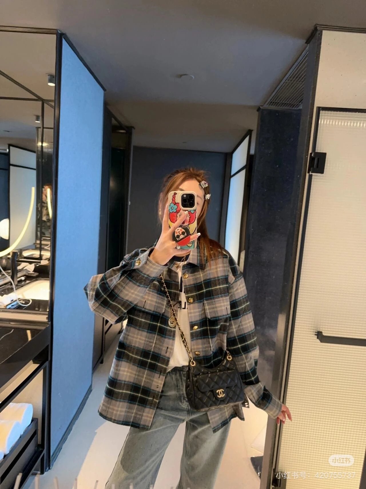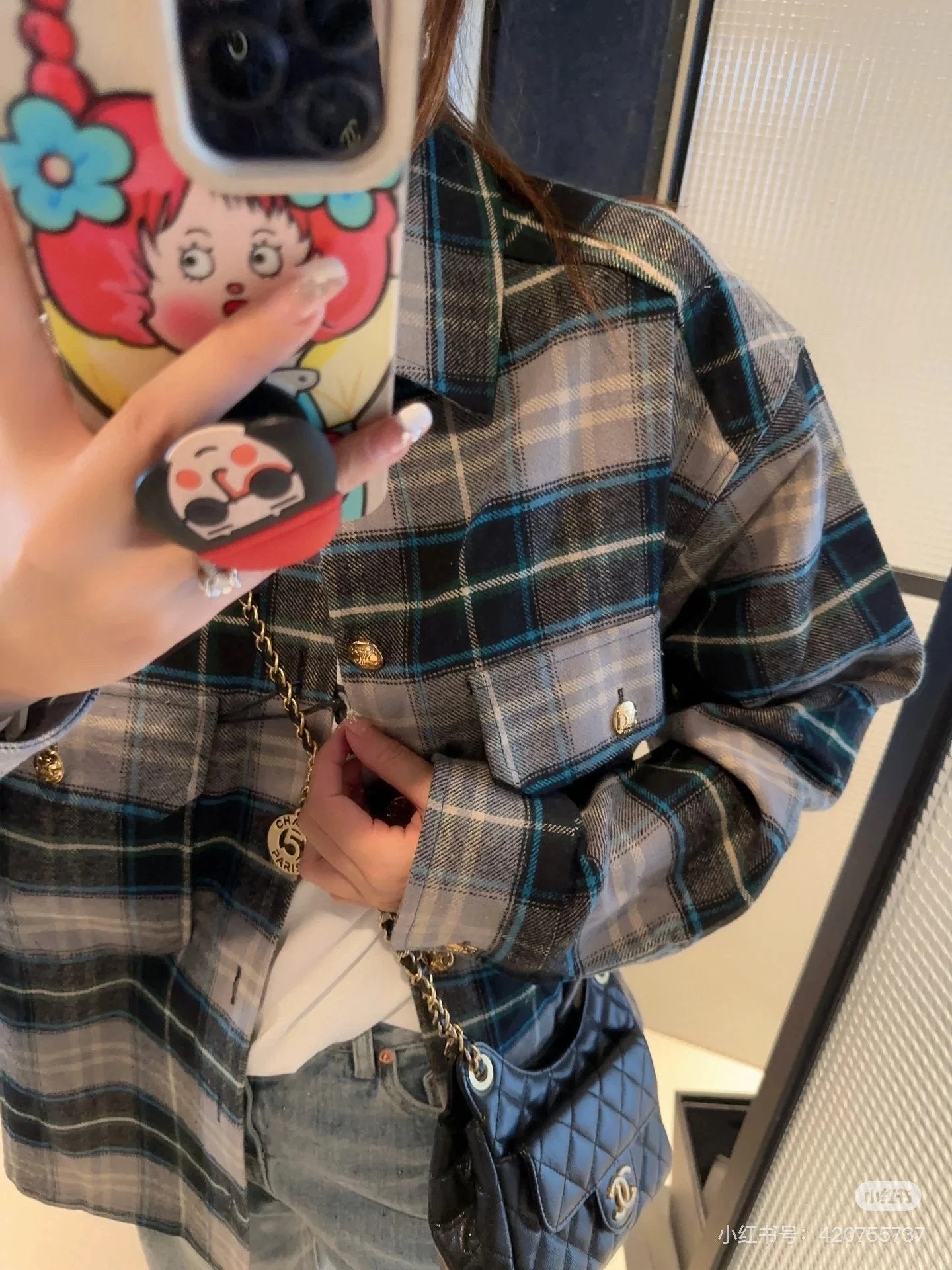 Top Version Celine 23FW Flannel Plaid Long Sleeve Shirt Unisex Versatile Business Casual Slim Fit Jacket