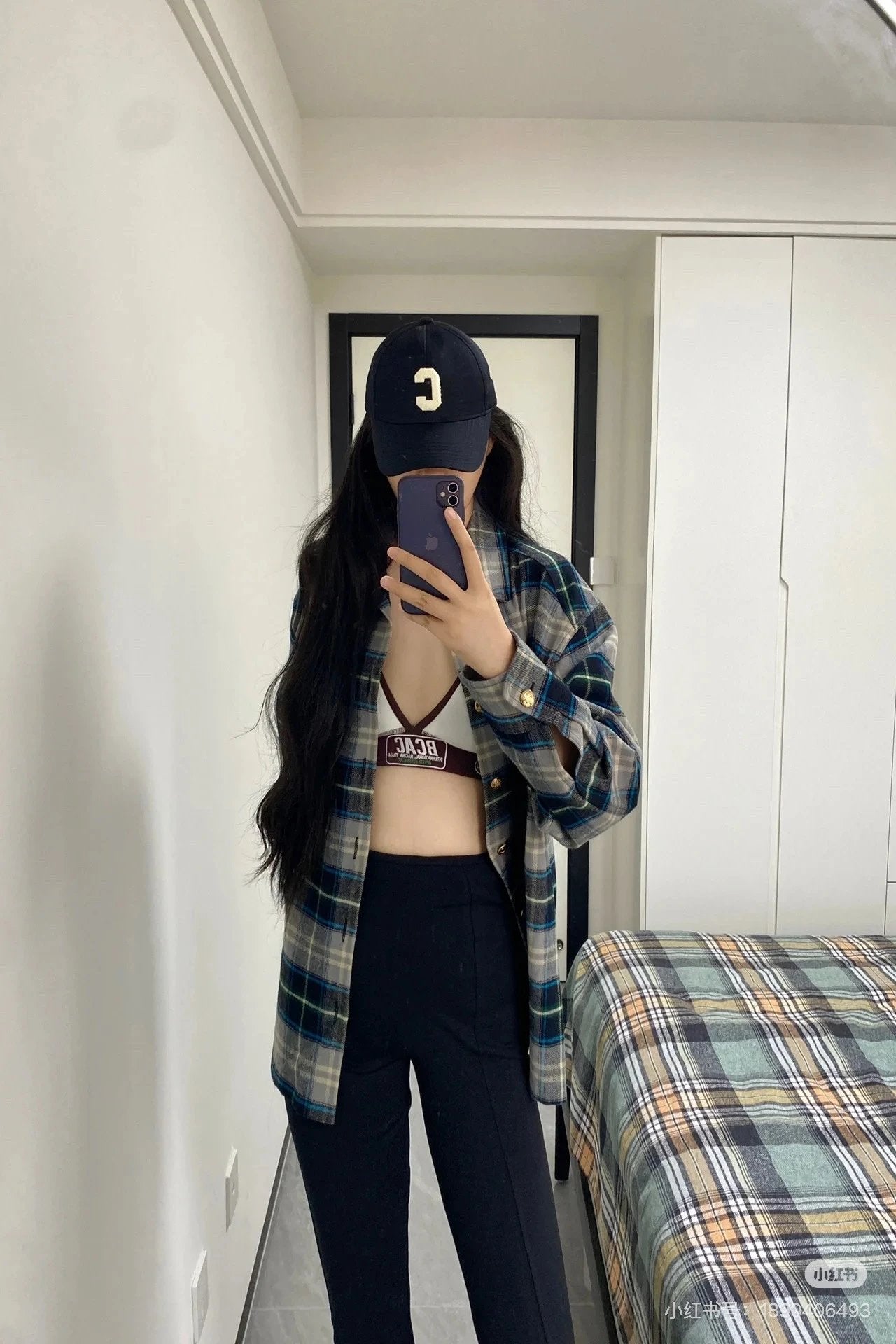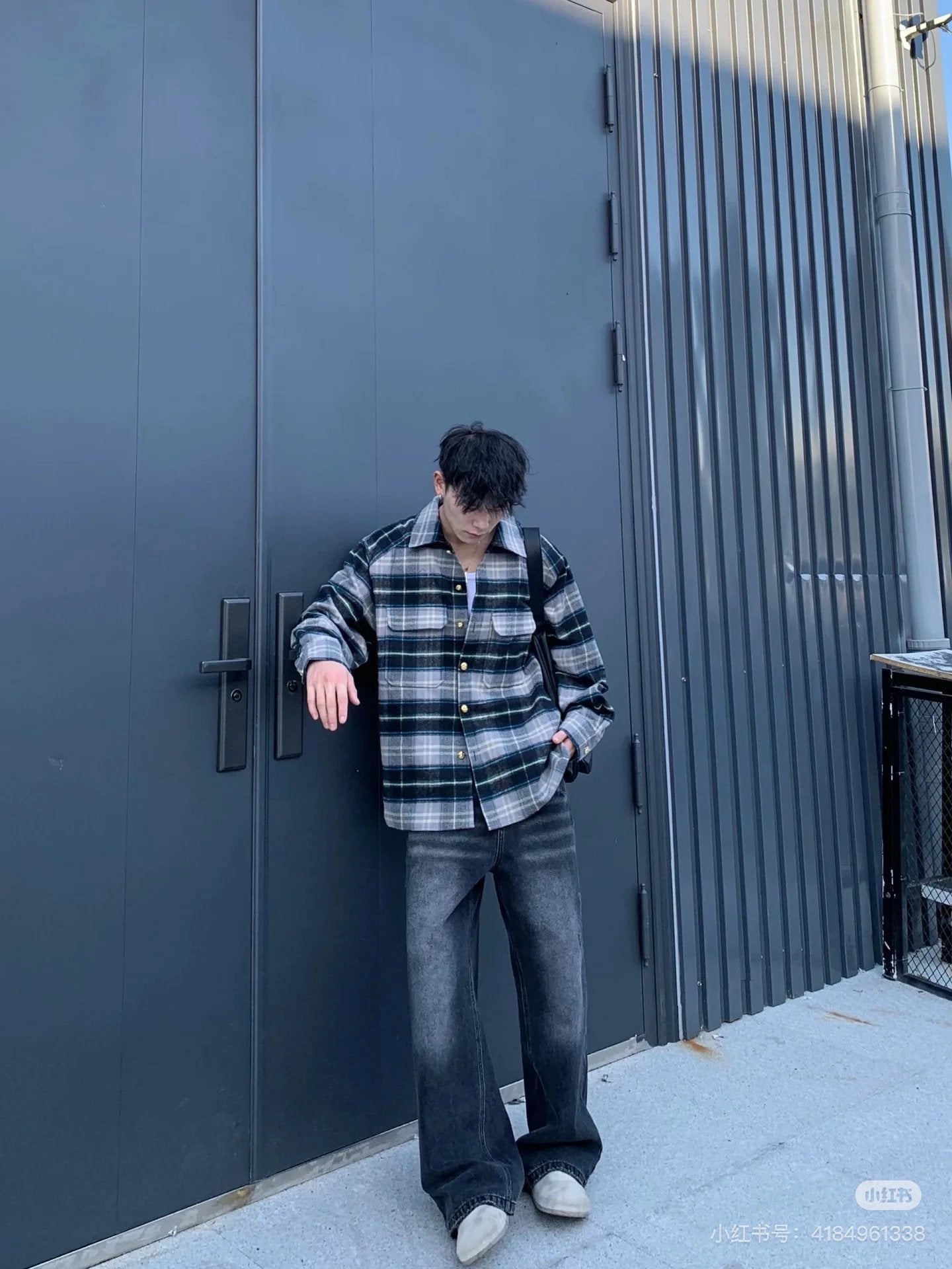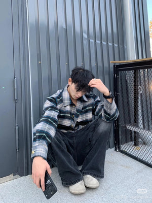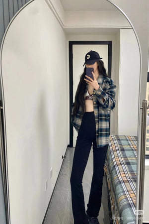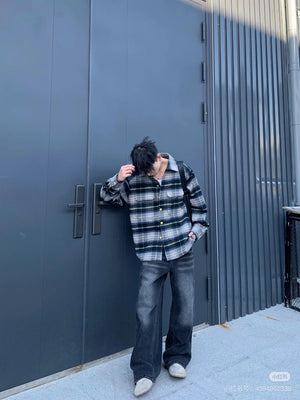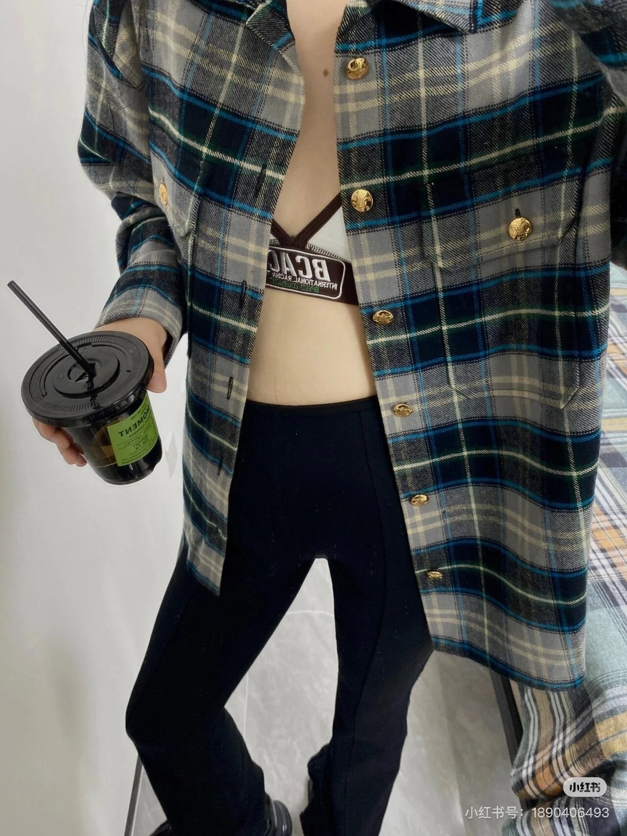 Top Version Celine 23FW Flannel Plaid Long Sleeve Shirt Unisex Versatile Business Casual Slim Fit Jacket