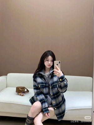 Celine Jackets 23FW Flannel Plaid Long Sleeve Shirt Men's and Women's Same Style All-Matching Business Casual Slim-Fitting Coat