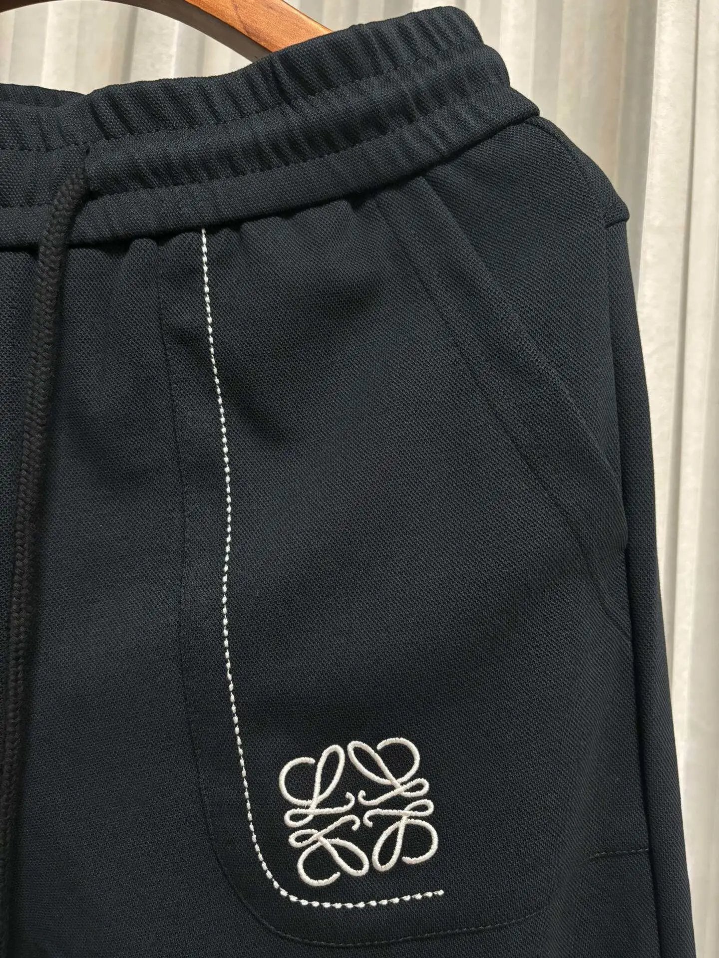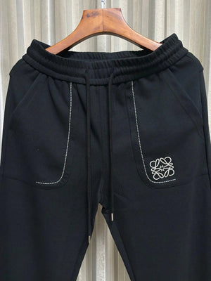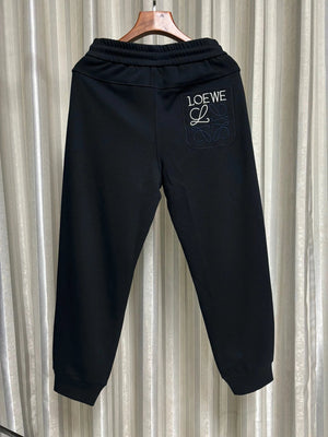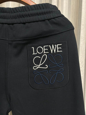 LOEWE Sweatpants 24Fw Back Pocket Embroidery logo Drawstring Jogger Sweatpants for Men and Women, Autumn and Winter Loose Fit, High Waist, Color Block, Plus Size, Casual Pants