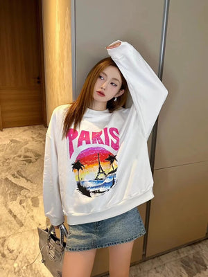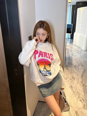 Balenciaga Hoodie 24FW Beach Painting Night Scene Crewneck Sweatshirt Unisex Sports Casual Versatile