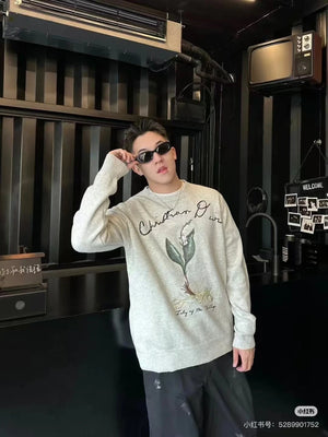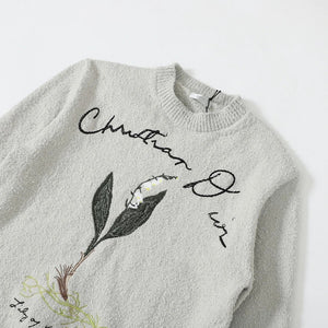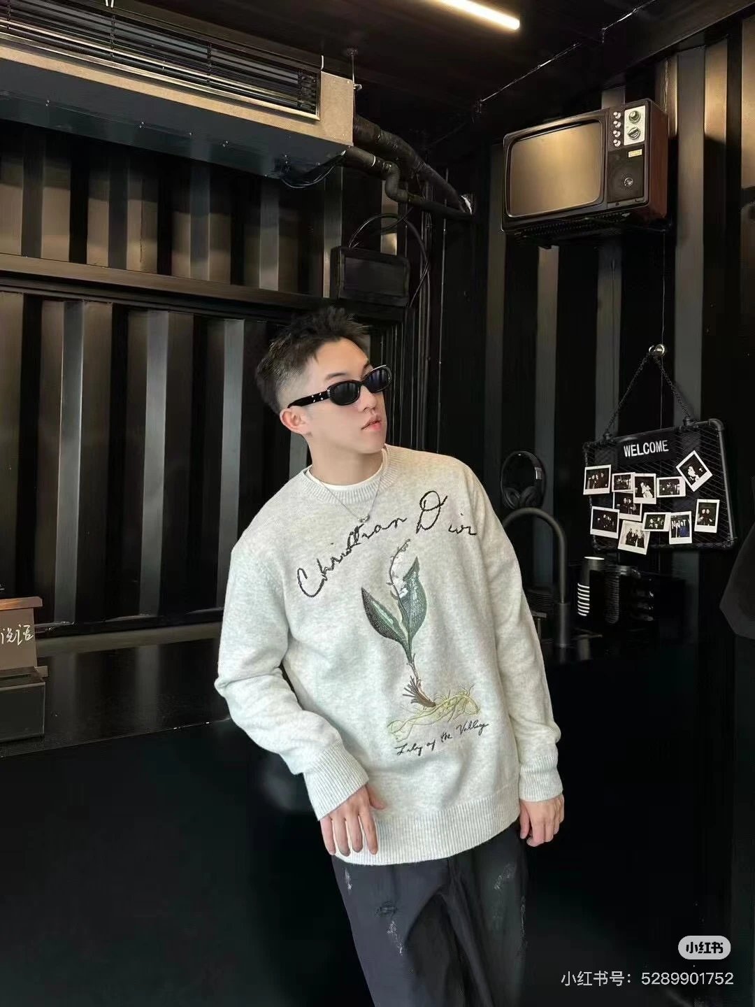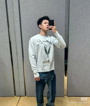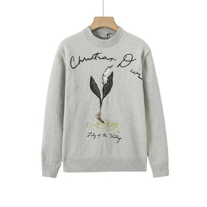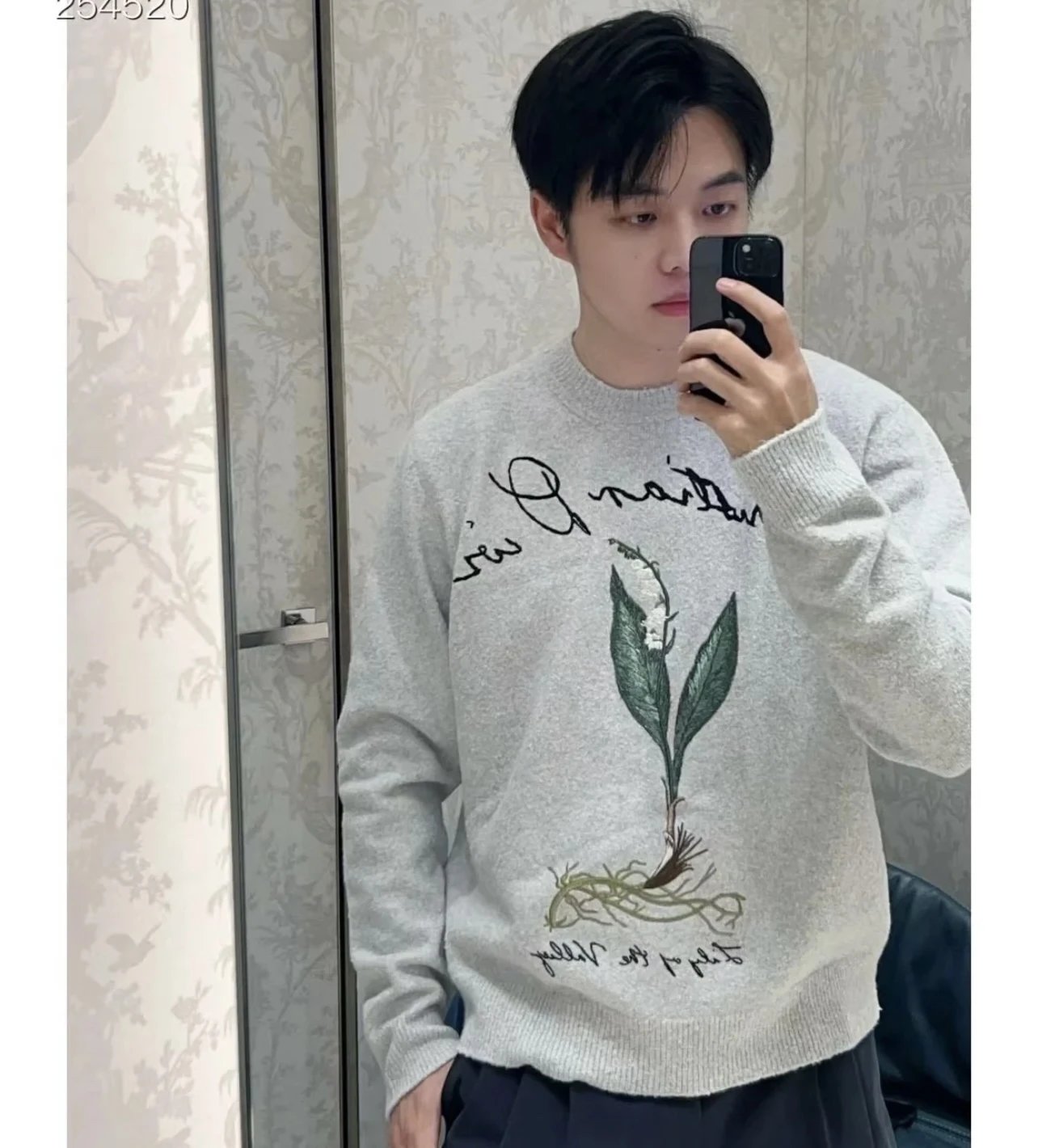 Dior Sweater 24FW Knitted Sweater with Exquisite Lily of the Valley Flower Embroidery, Crew Neck Pullover Sweater, Unisex