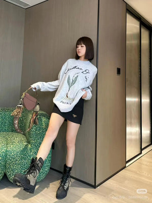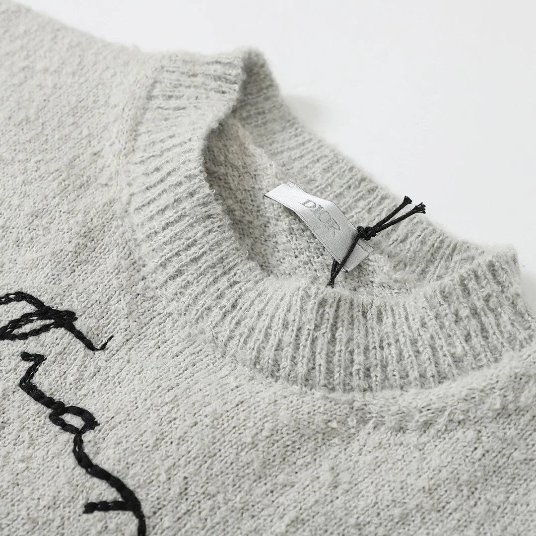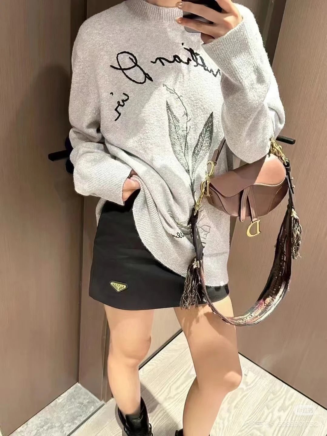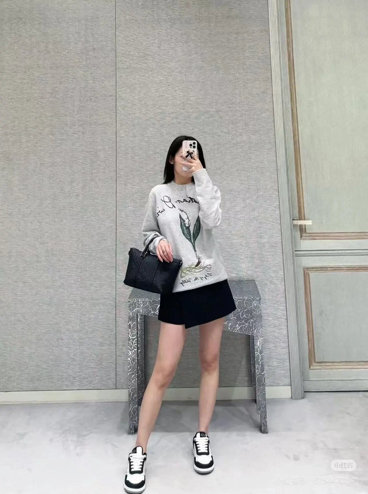 Dior Sweater 24FW Knitted Sweater with Exquisite Lily of the Valley Flower Embroidery, Crew Neck Pullover Sweater, Unisex