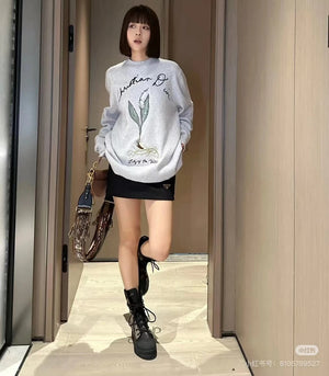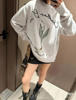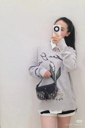 Dior Christian Dior CD 24 FW Sweater with Exquisite Lily of the Valley Flower Embroidery Round Neck Pullover Sweater