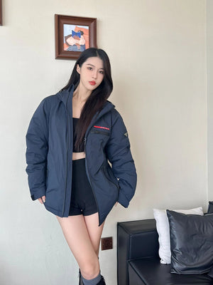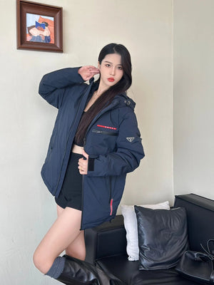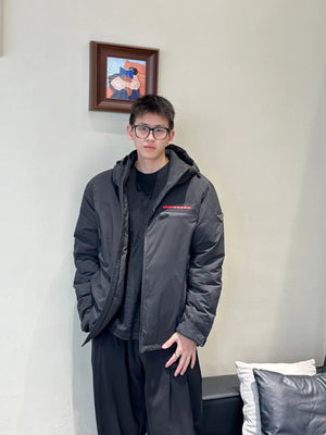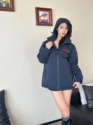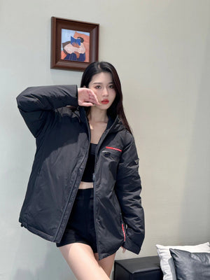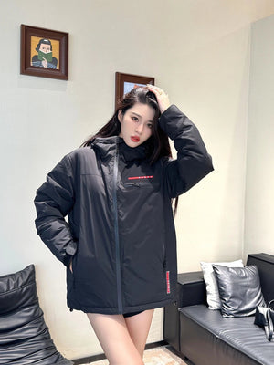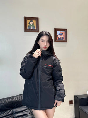 PRADA Down jacket 24Fw Red Label Adhesive and Triangle Mark Badge Hooded down Jacket Coat for Men and Women