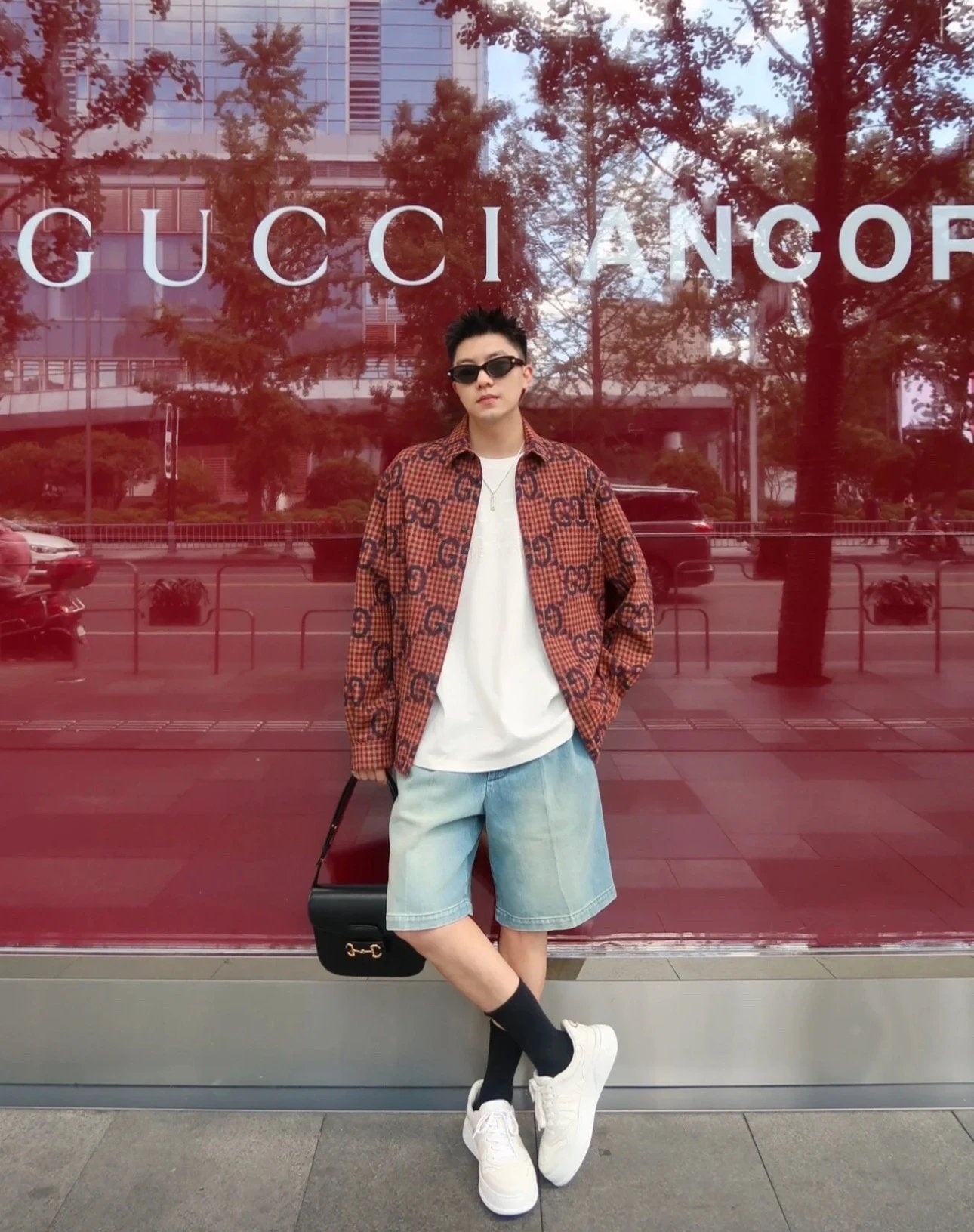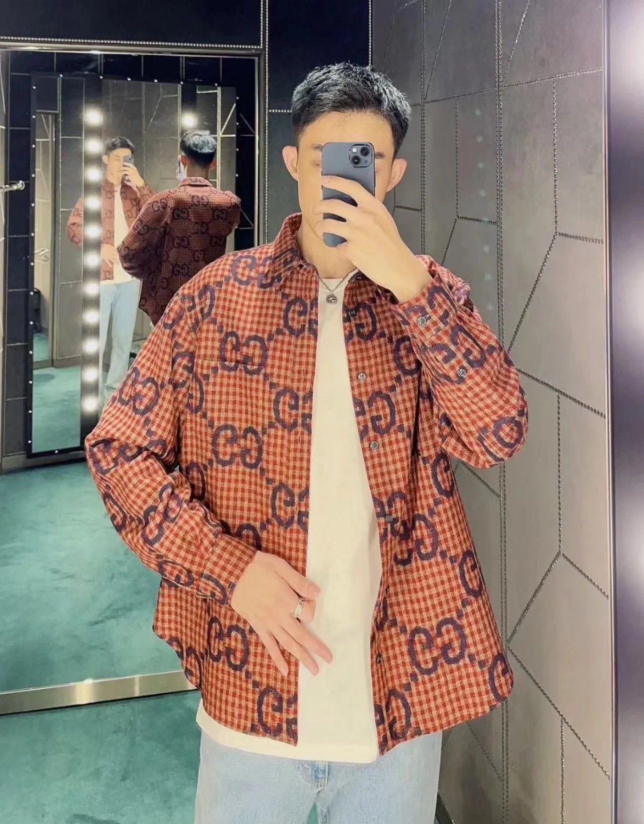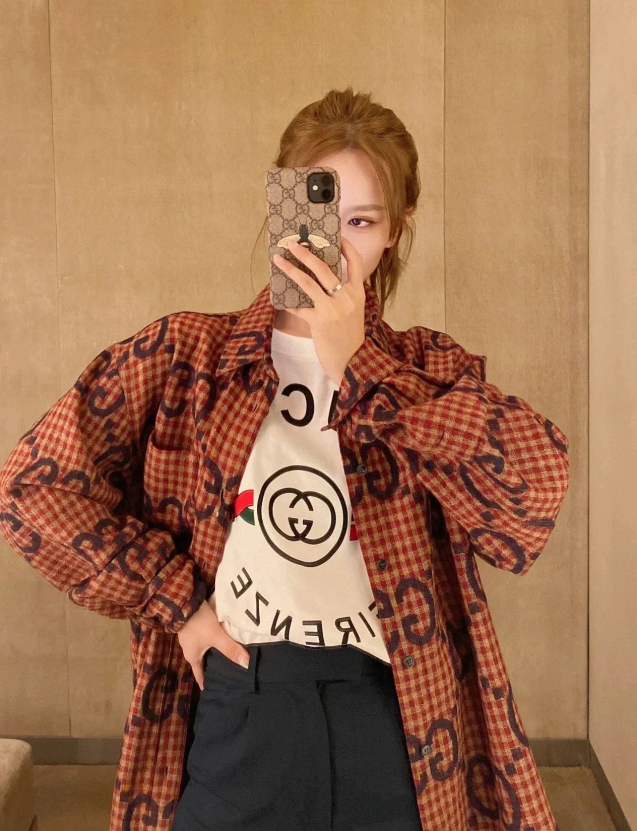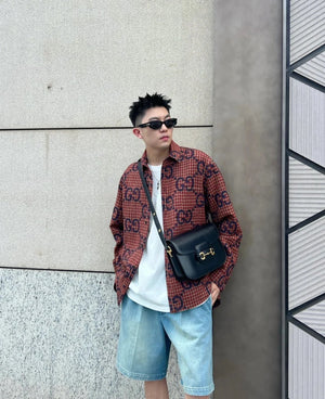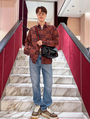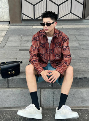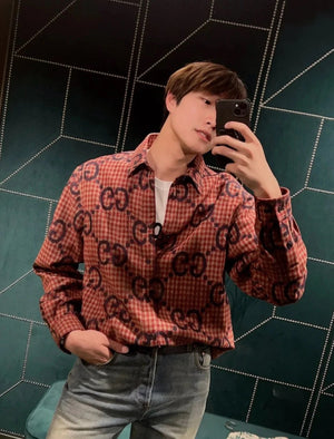 Gucci GC 24FW Red Plaid Cotton Linen Jacquard Long Sleeve Shirt Unisex