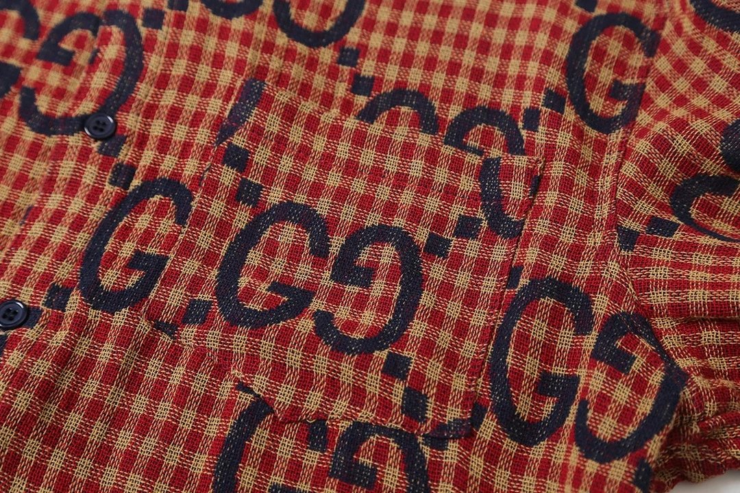 Gucci Shirt 24FW Red Plaid Cotton Linen Jacquard Long Sleeve Shirt Unisex