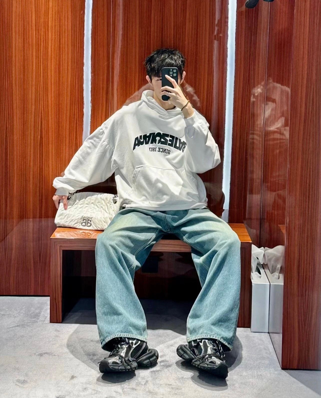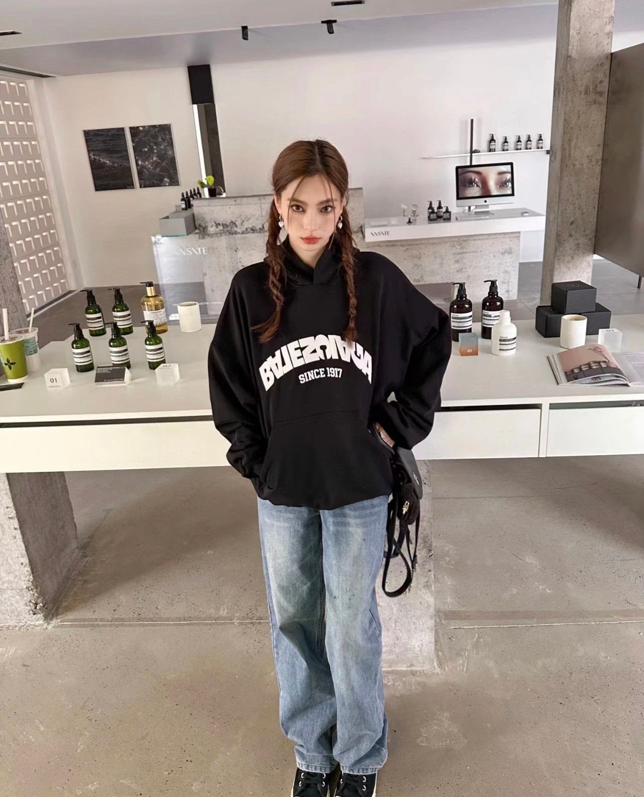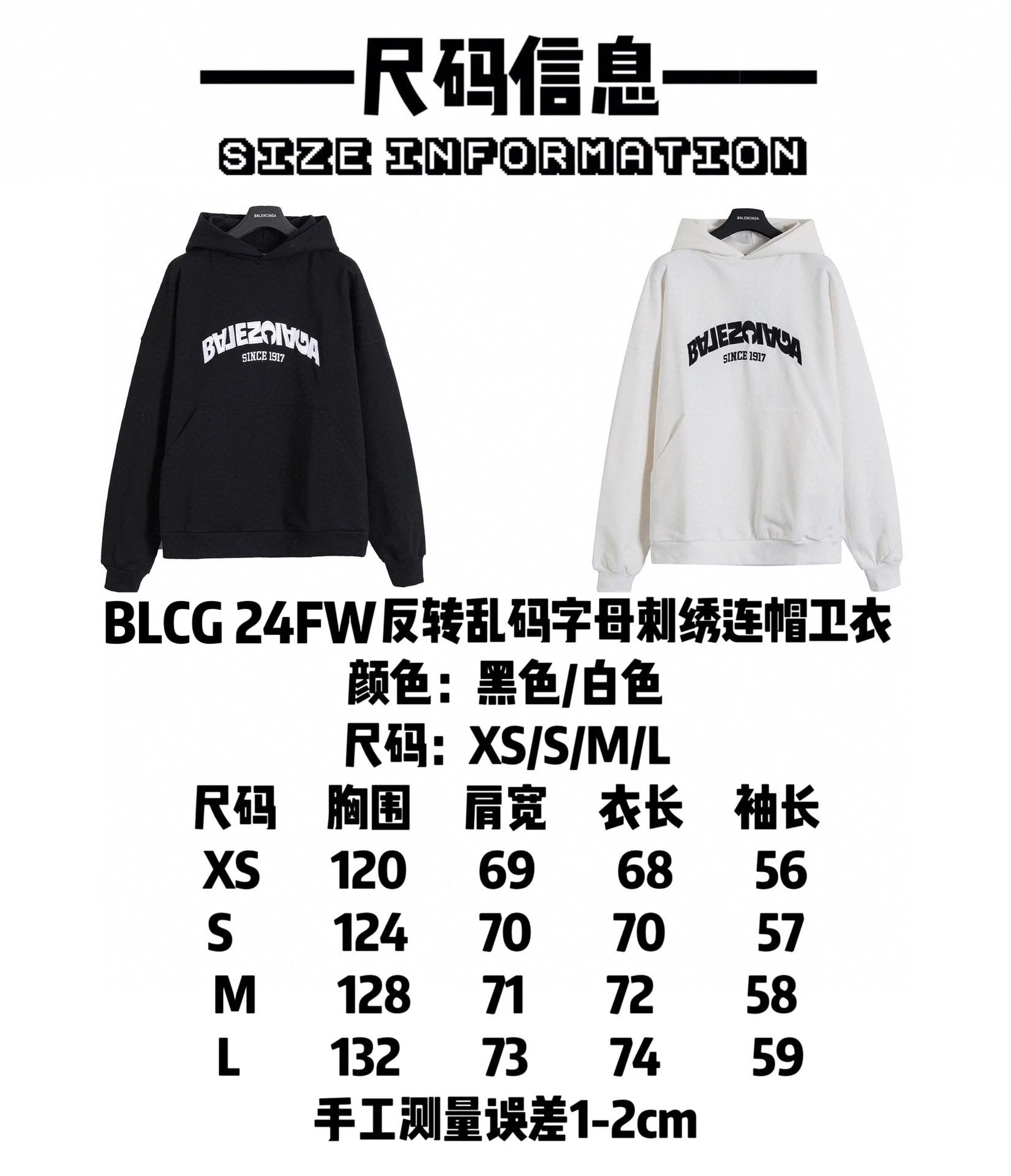 Balenciaga Hoodie 24FW Reversed Messy Letter Embroidery Hoodie Sweatshirt Unisex Sports Casual Loose Fit Versatile