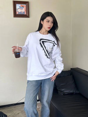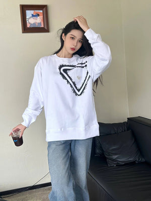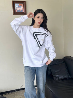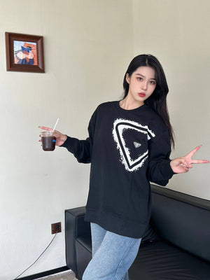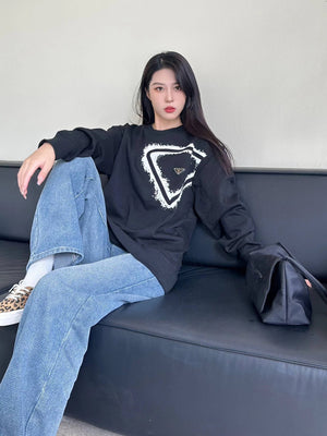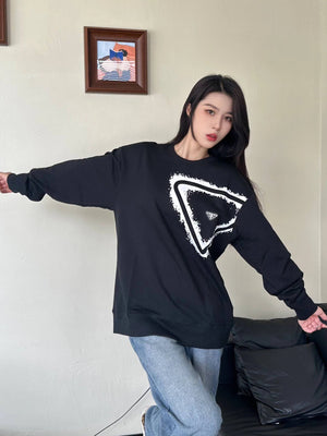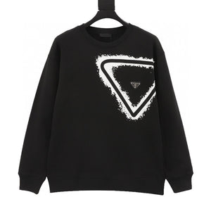 PRADA Hoodie 24Fw Triangle Mark Splash Ink Printed Crew Neck Sweatshirt Men and Women Same Style