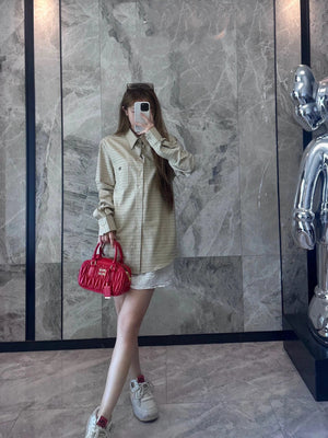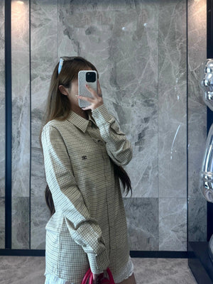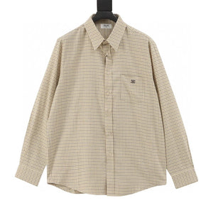 Celine Shirt 24Fw Triomphe Embroidered Plaid Shirt for Men and Women