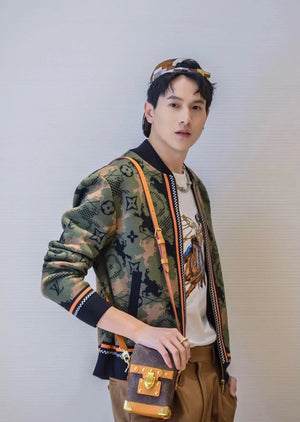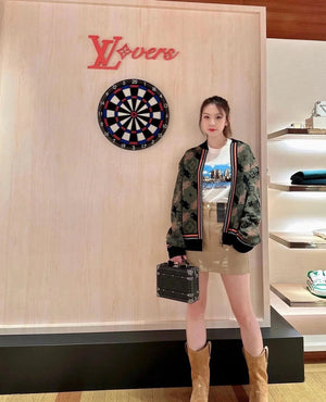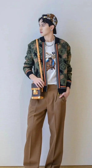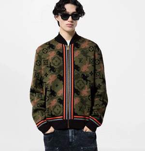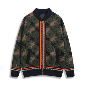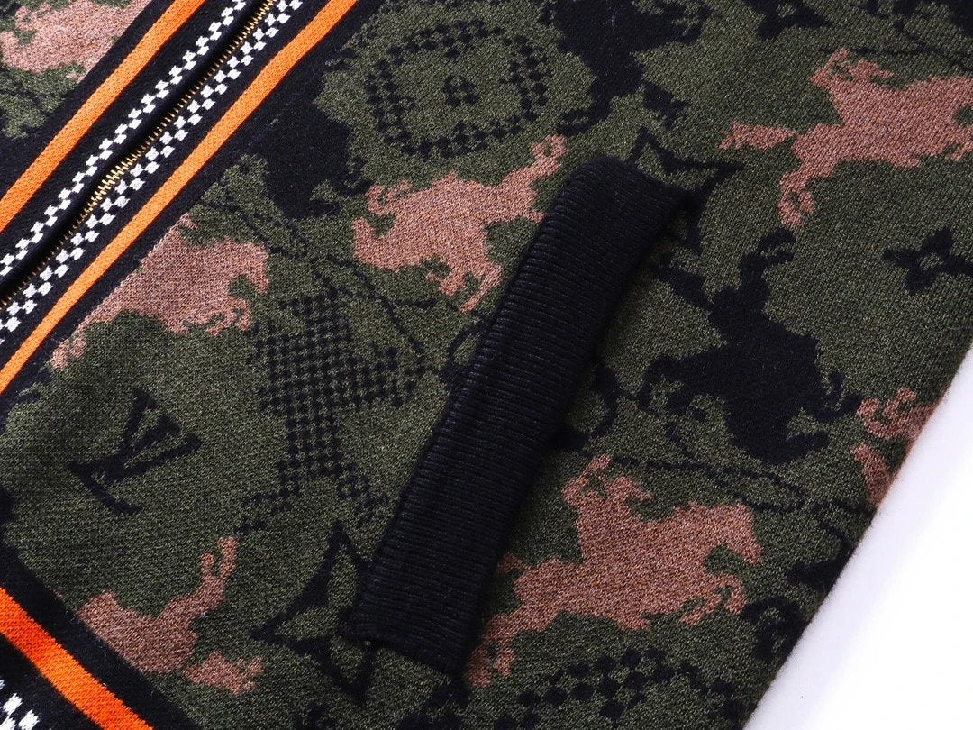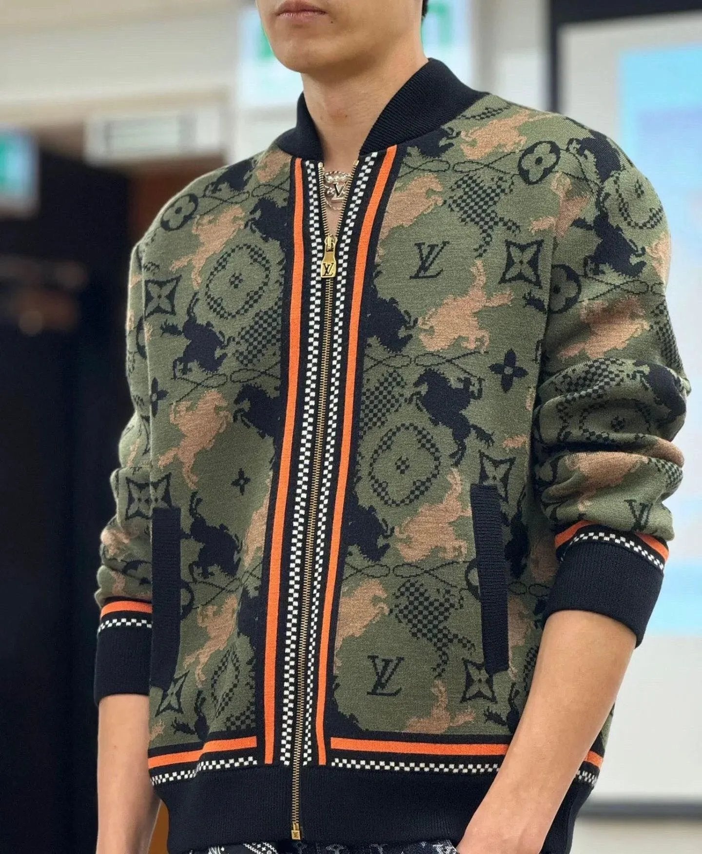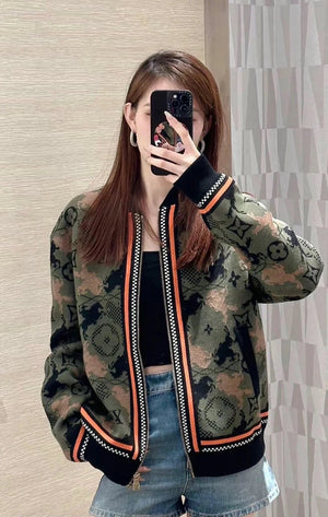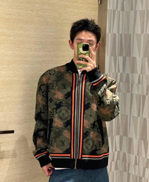 Top Version V 24 New Jacquard Wool Bomber Jacket Monogram Pattern Wool Jacket Unisex Autumn Winter New Sports Casual Loose Versatile