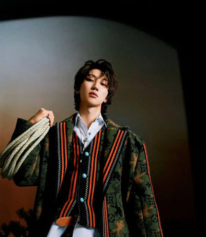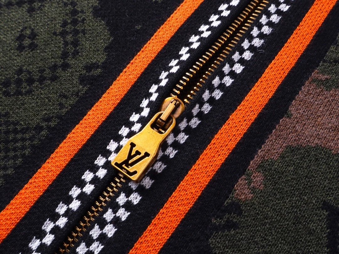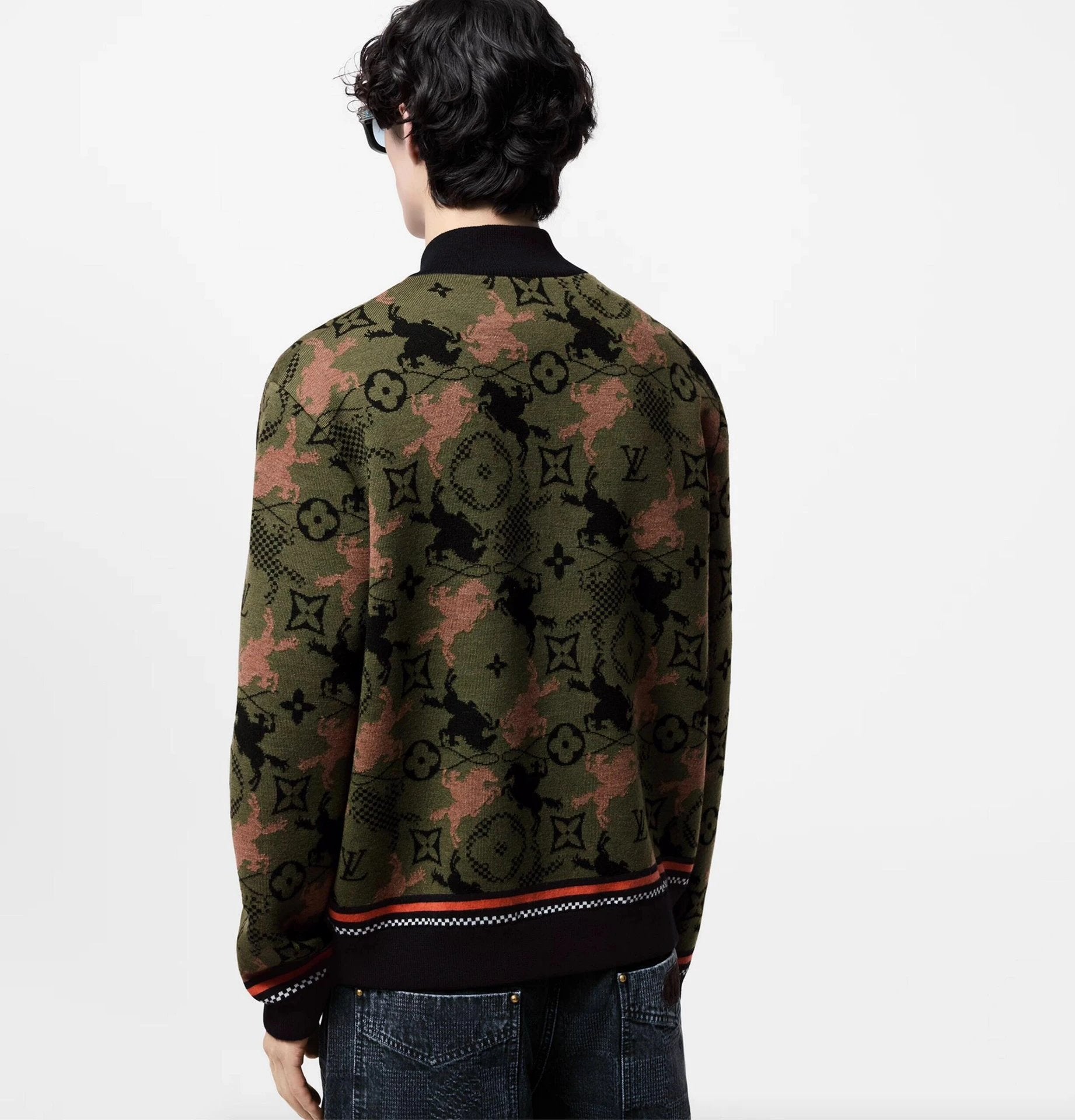 The design interprets the Geo Rodeo pattern from the 2024 Autumn/Winter Fashion Show in warm tones, incorporating a complex jacquard knit pattern with a leaping western wild horse silhouette and monogram pattern. Small Damier trim with geometric grids on the zipper, hem and cuffs creates an elegant design.