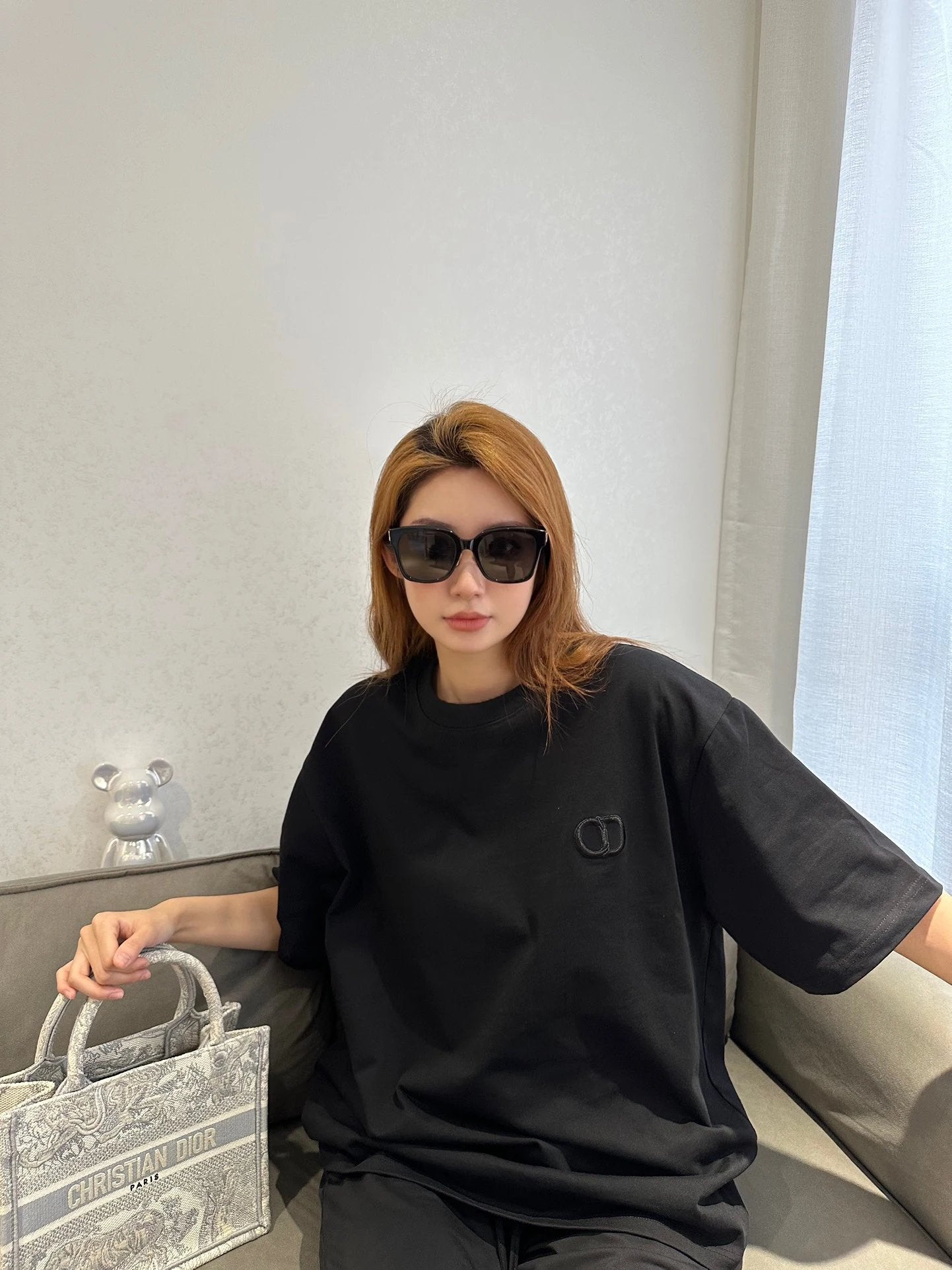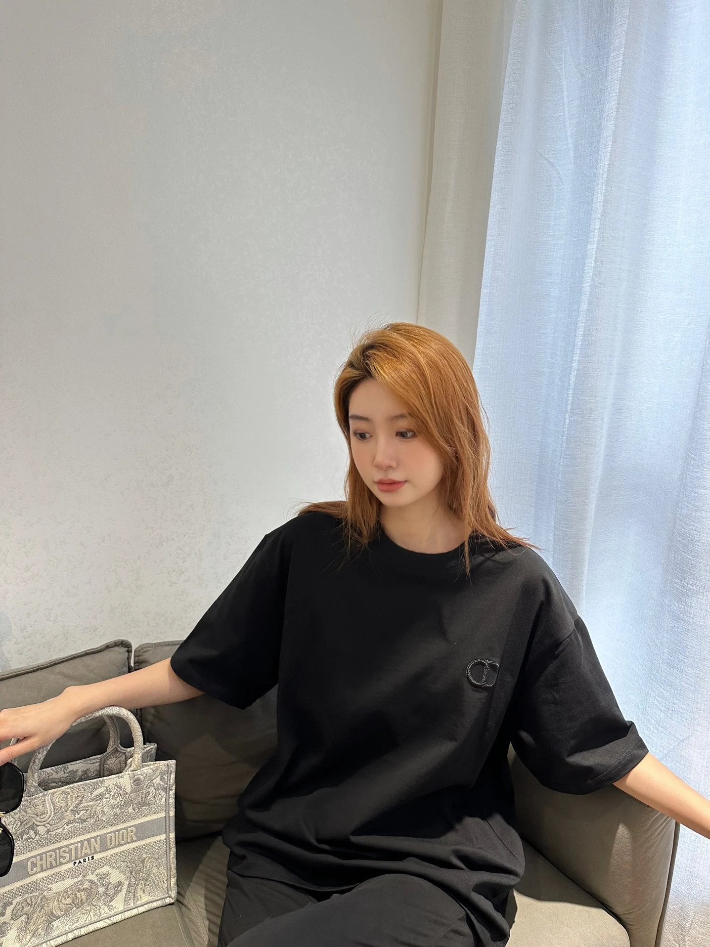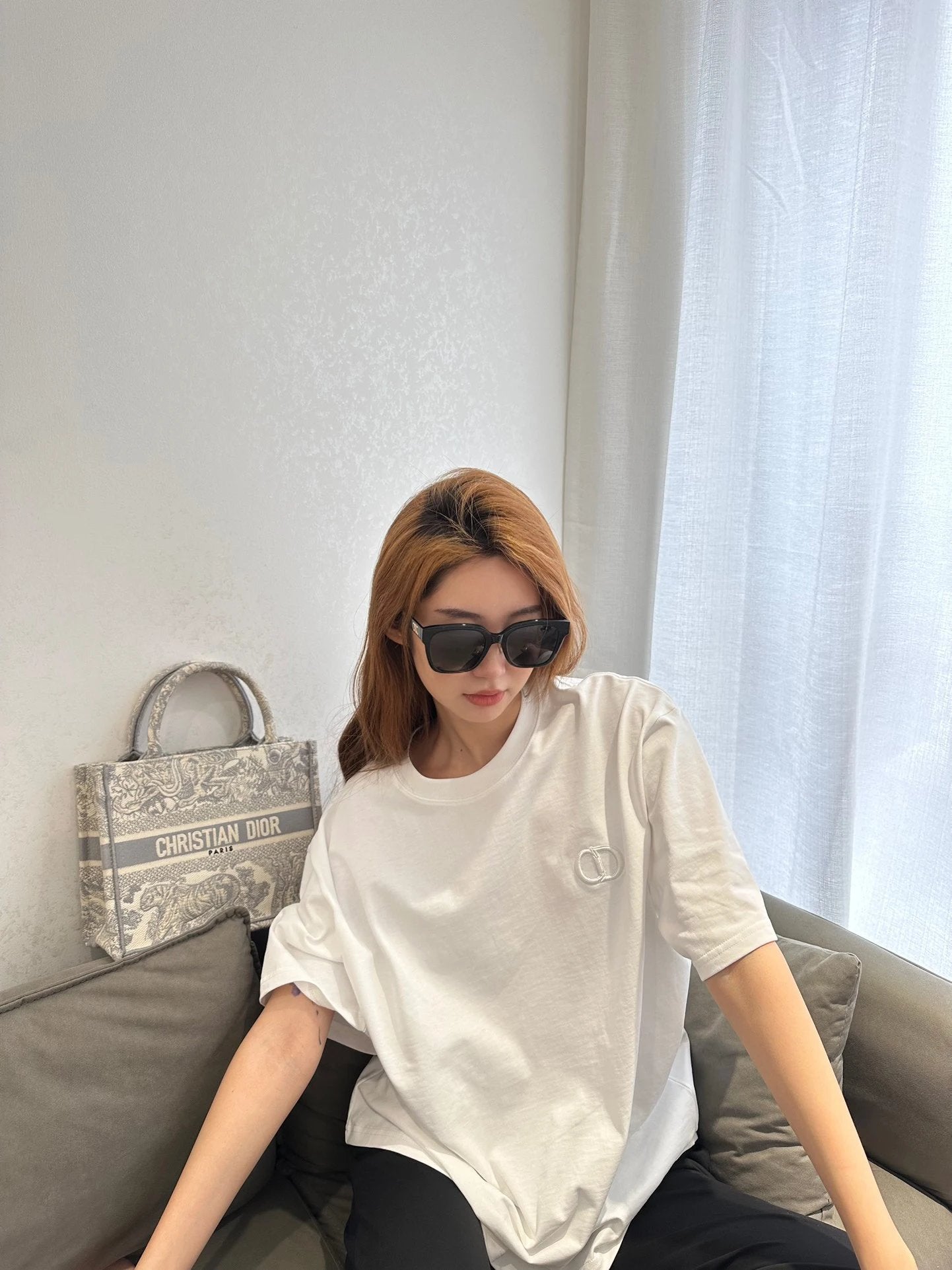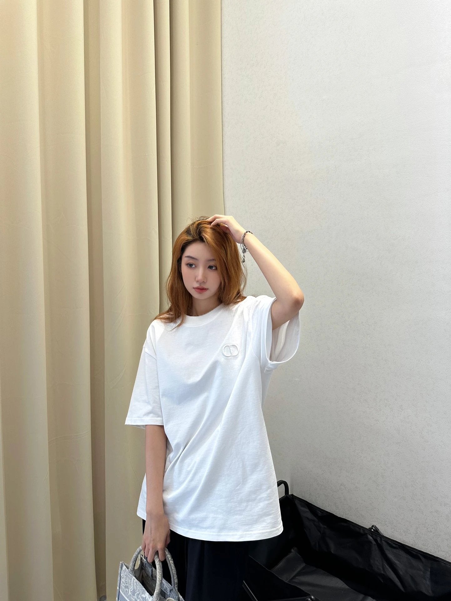 Dior T-shirt 25ss New pure cotton T Unisex T-Shirt OS Loose Fit Base Shirt Top Half Sleeve T-Shirt