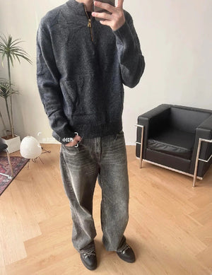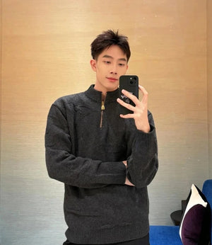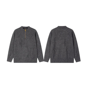 Top Version V 25ss Ski Series Dark Pattern Old Flower Logo Jacquard Couple Half-Zip Knit Sweater Long Sleeve Thickened Lazy Style OS Version Loose Unisex Loose Knit Top Coat Versatile Casual Wear