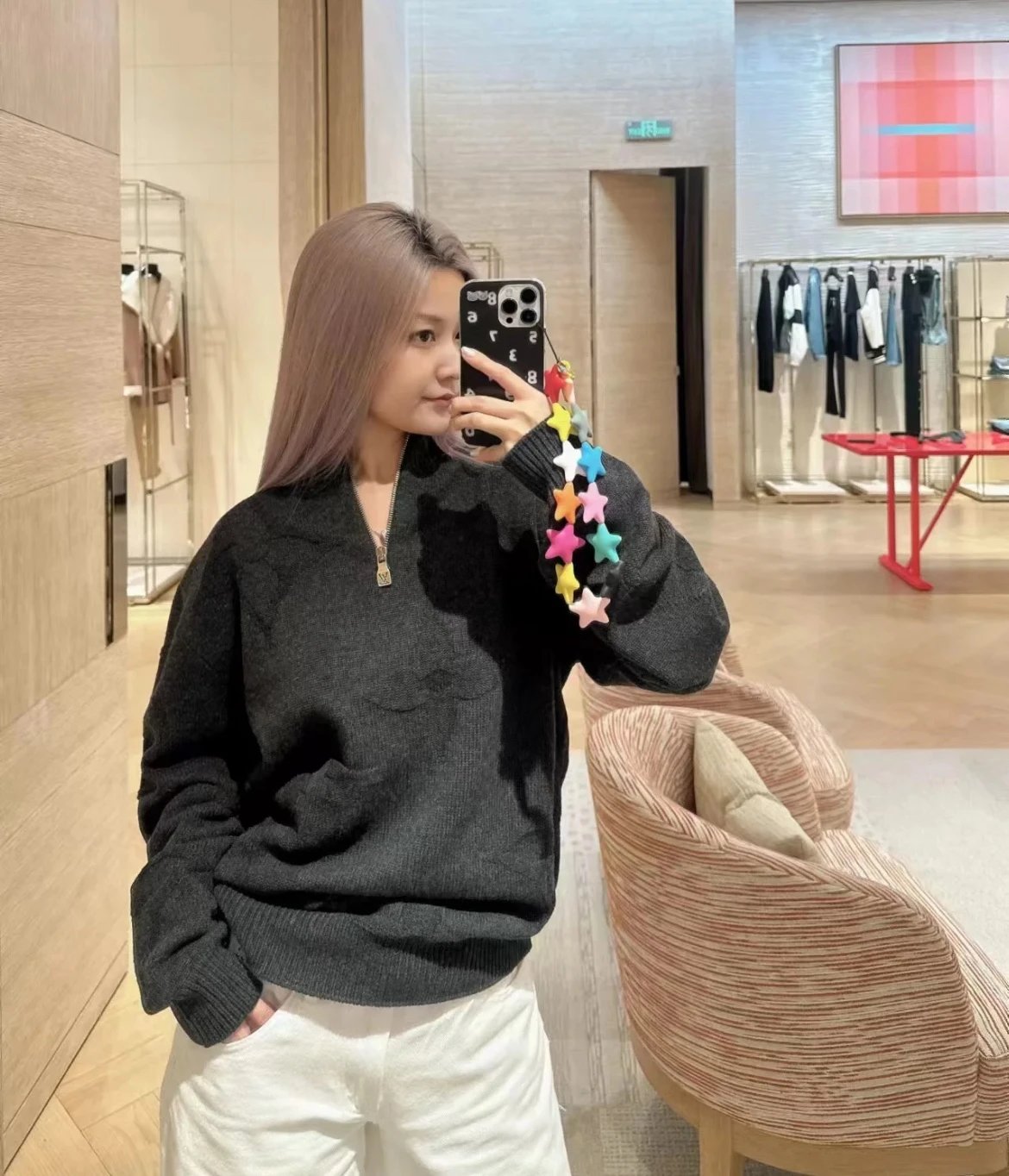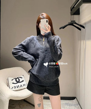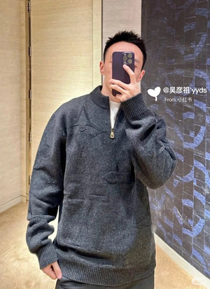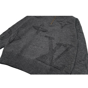 Louis Vuitton LV Sweater 25ss Ski Series Hidden Pattern Old Flower logo Jacquard Couple Half-Zip Knitted Sweater Long Sleeve Thickened Lazy Style OS Loose Fit Unisex Knit Top Jacket