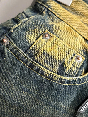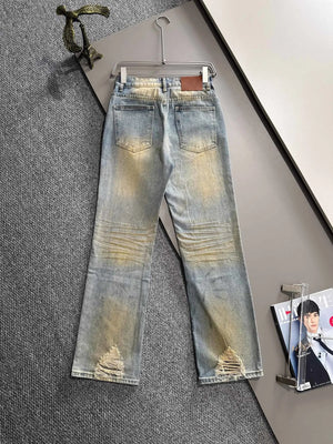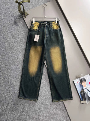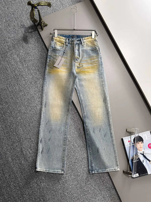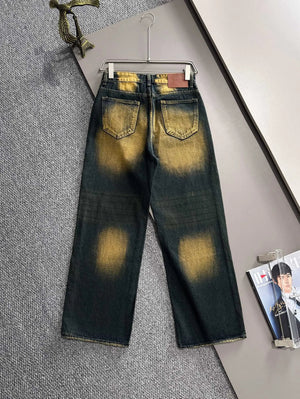 Paris 2025 Four Seasons Heavy Washed Vintage Loose Jeans, Made with Denim Fabric that has undergone Multiple Washing, Polishing, and Distressing Processes, Fully Compliant with Environmental Standards, Safe and Odorless, Loose Fit for Slim Legs and Height! Showcasing a Youthful Retro Trend with Eye-Catching Full-Body Logo and Sense of Style. Enhances body shape visually elongating leg lines, easily giving the impression of 1.8m long legs, catering to various daily outfits!