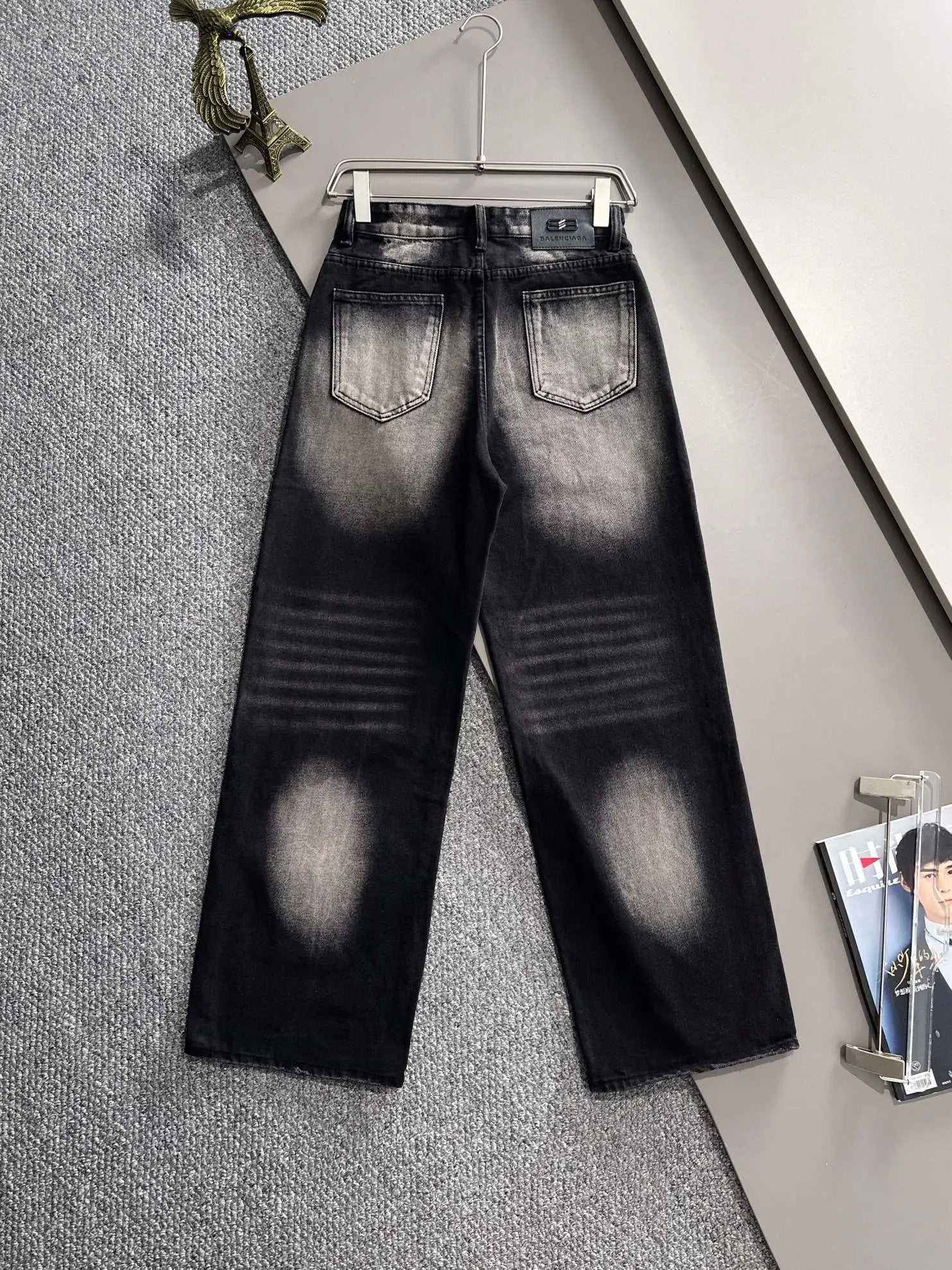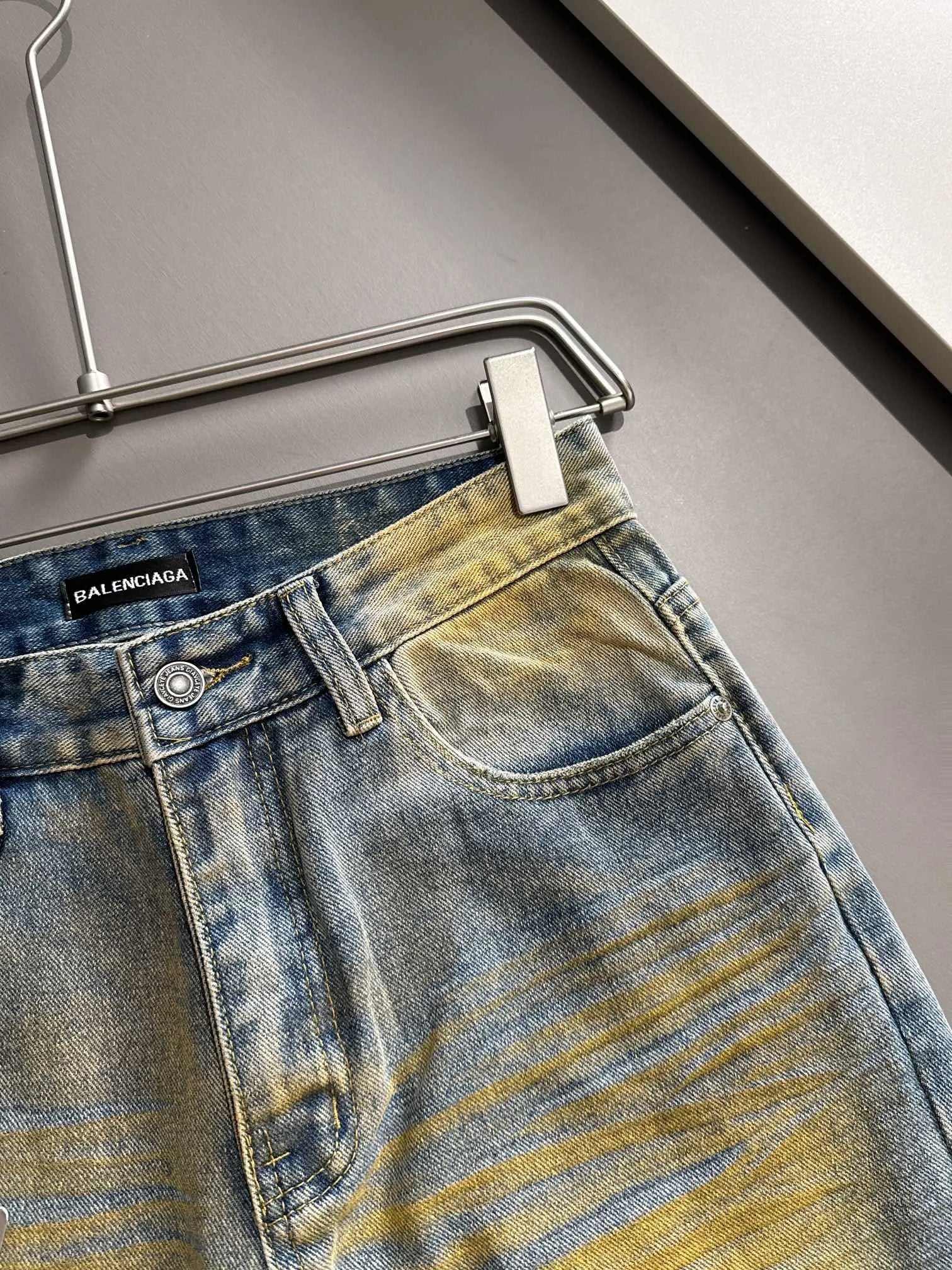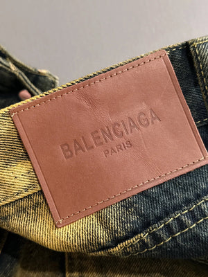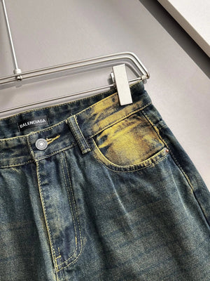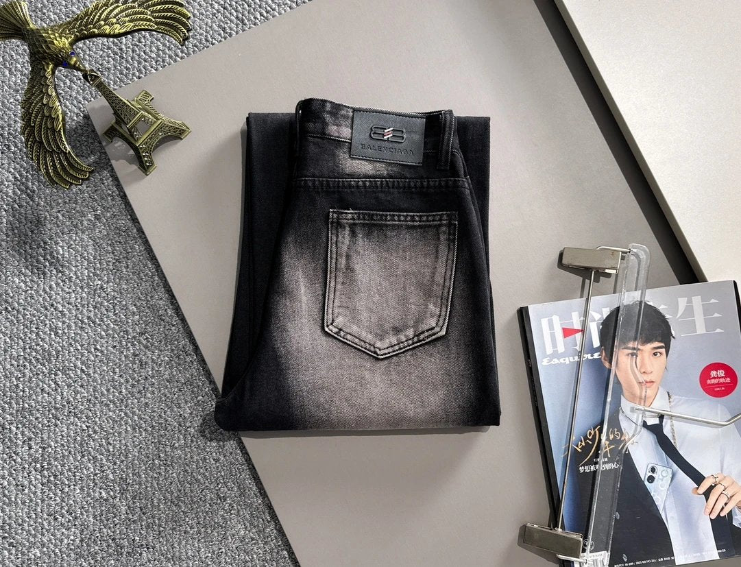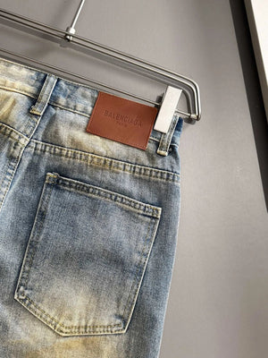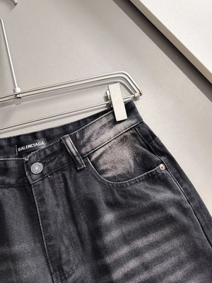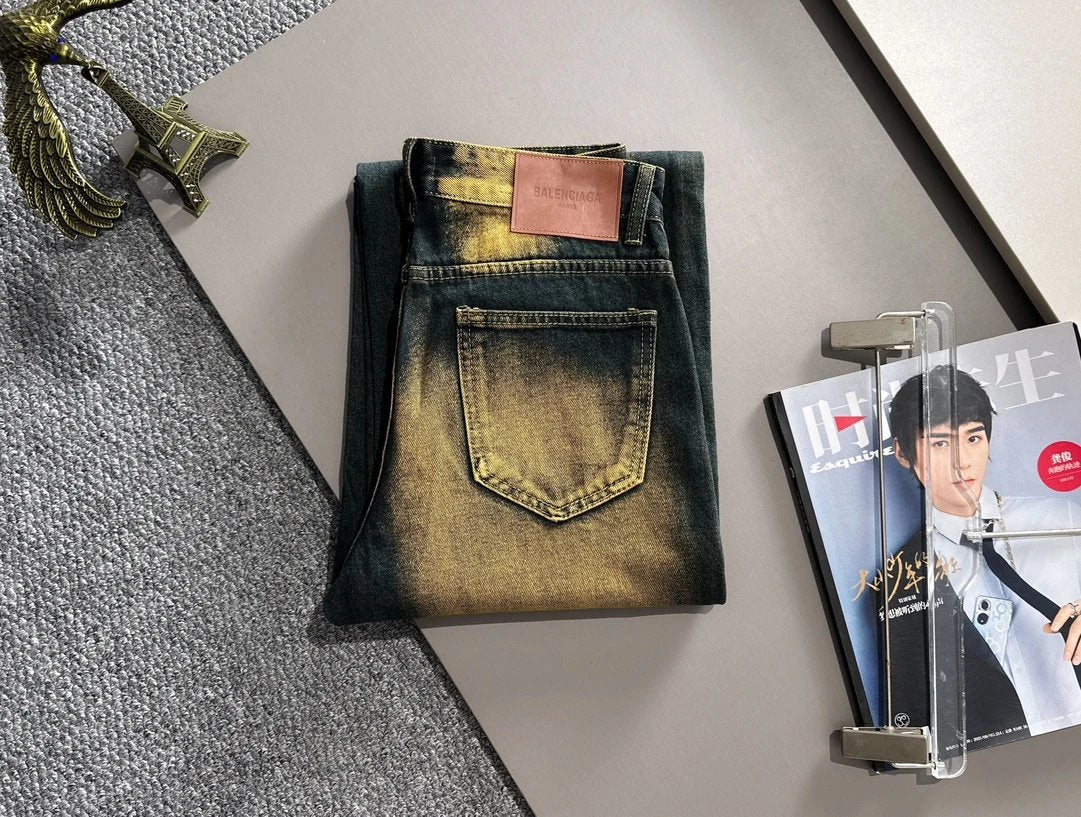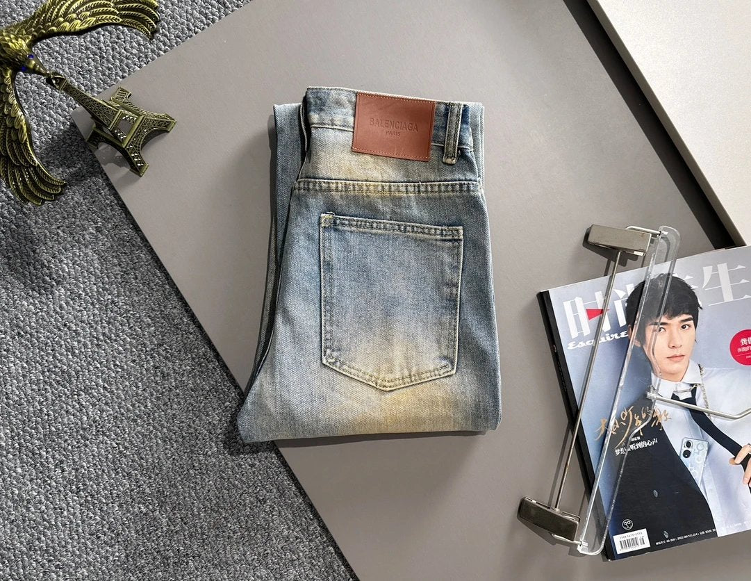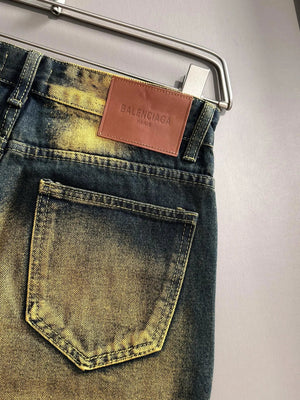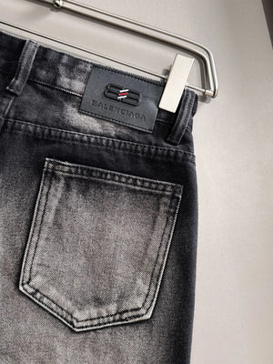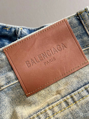 Balenciaga Jeans 25ss Spring Summer New Ripped Patchwork Double B Straight Leg Jeans Unisex Long Pants