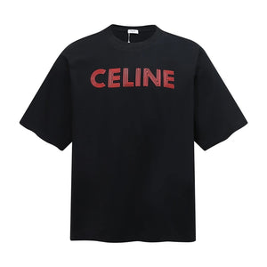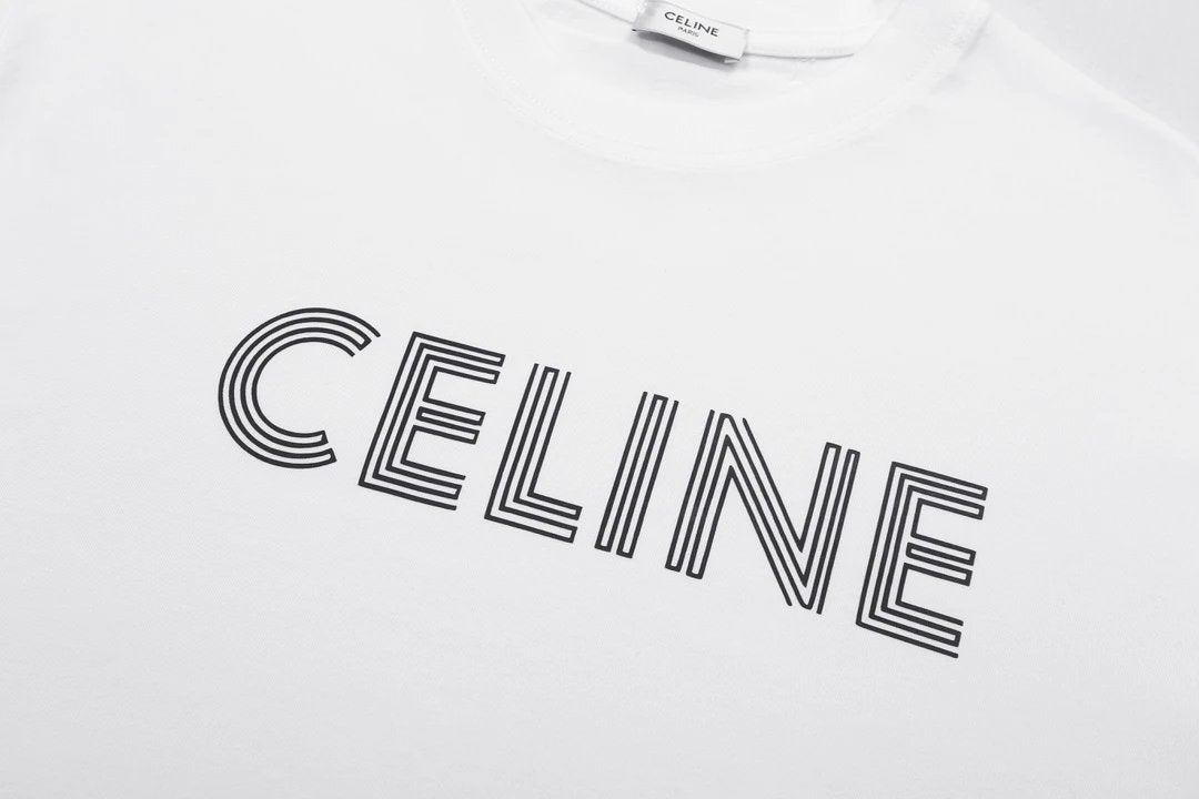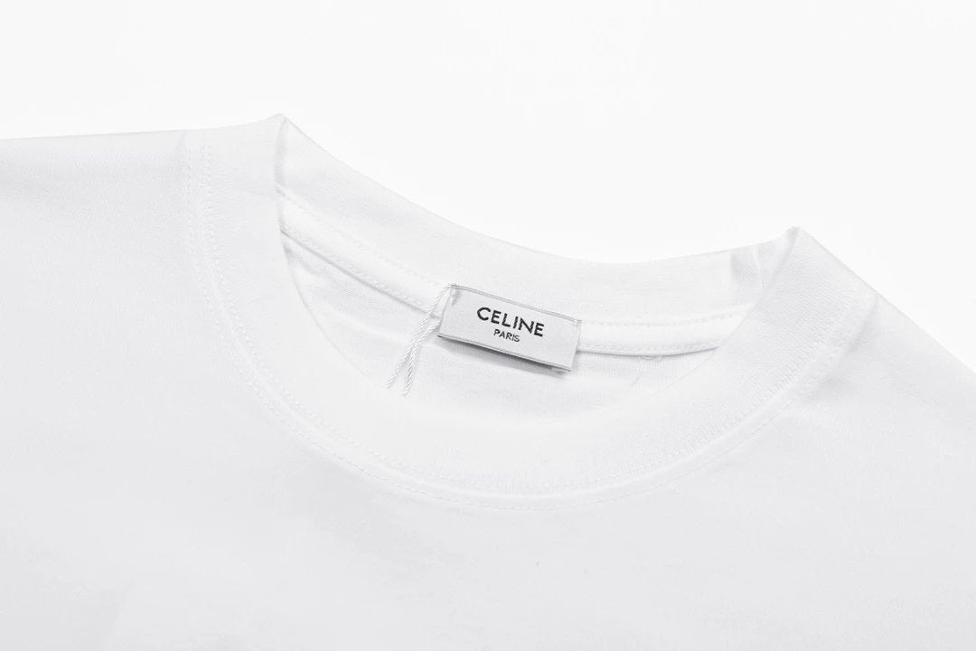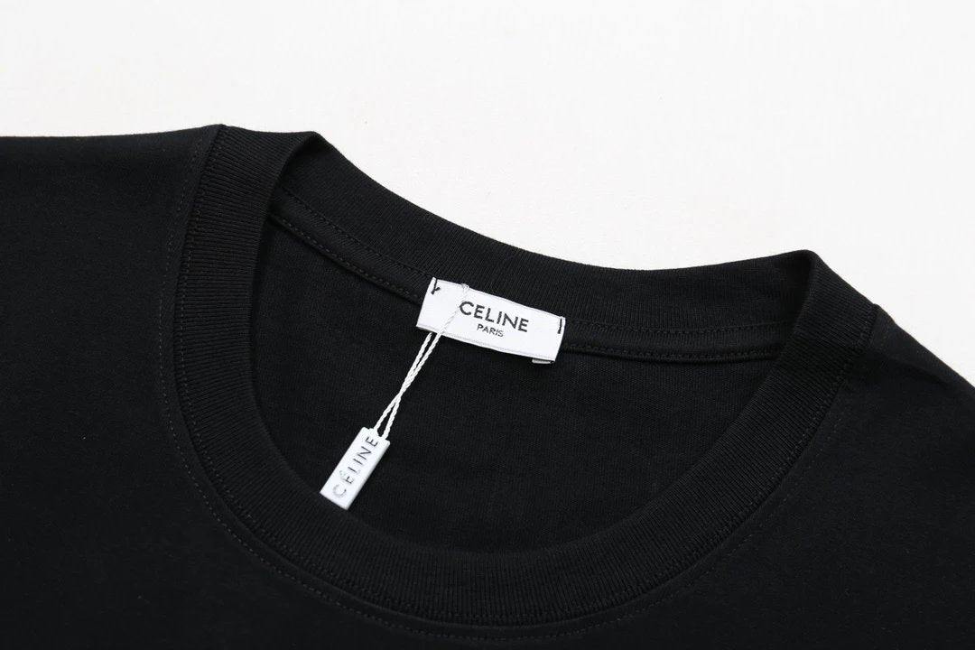 Celine T-shirt 3D Chest Print logo round Neck Short Sleeve25ss New Pure Cotton Unisex Style T T-shirt OS Loose Fit Base Shirt Short Sleeve Top T-Shirt
