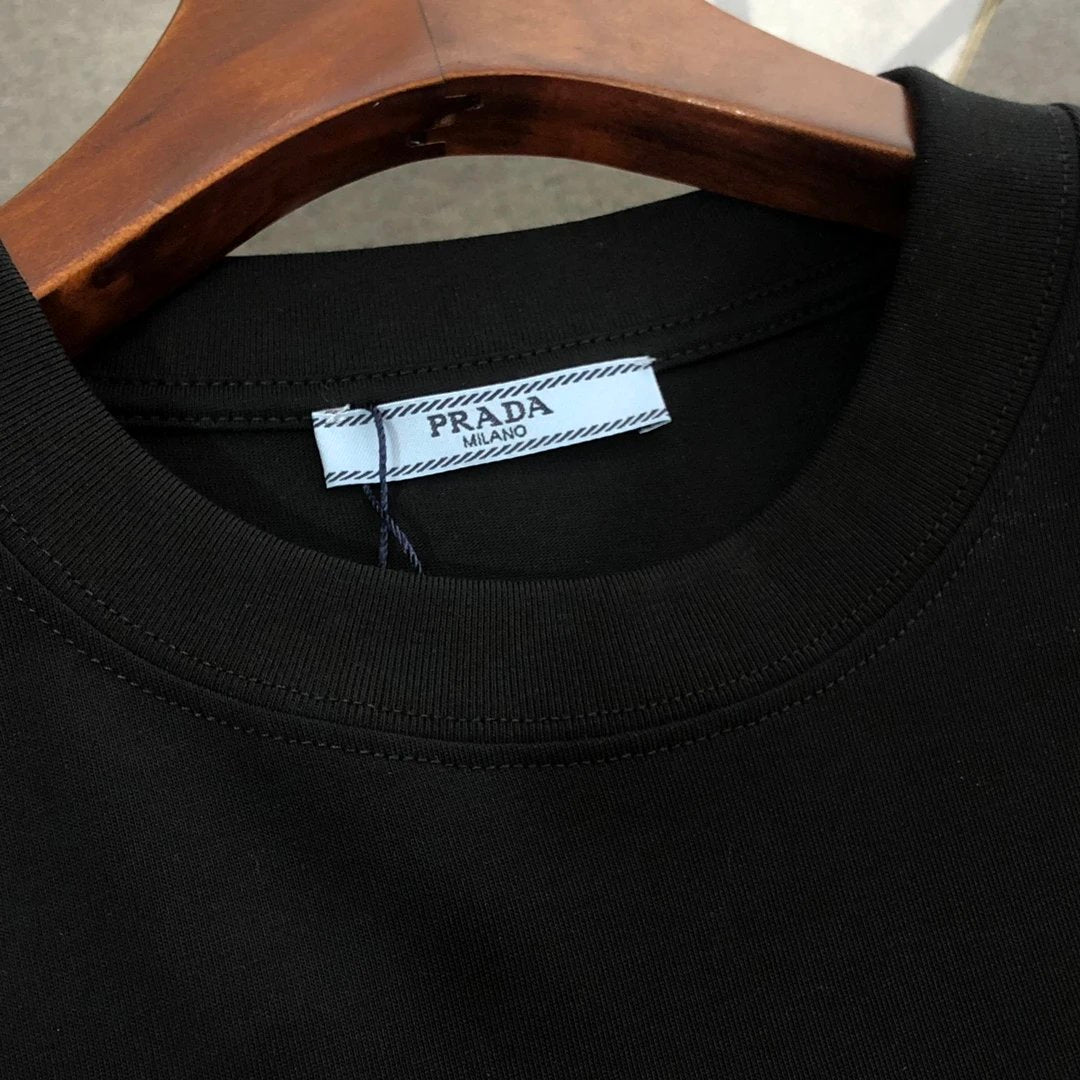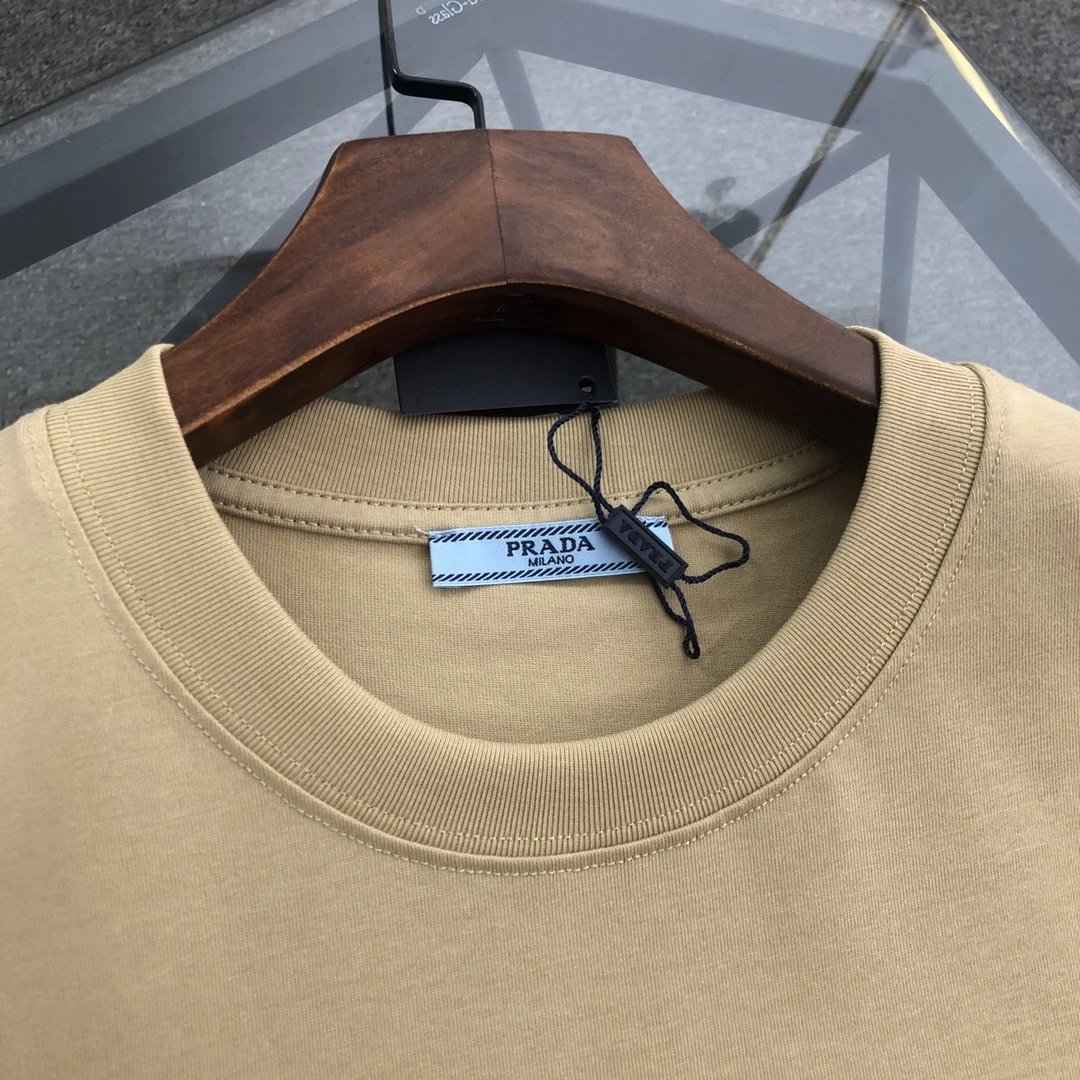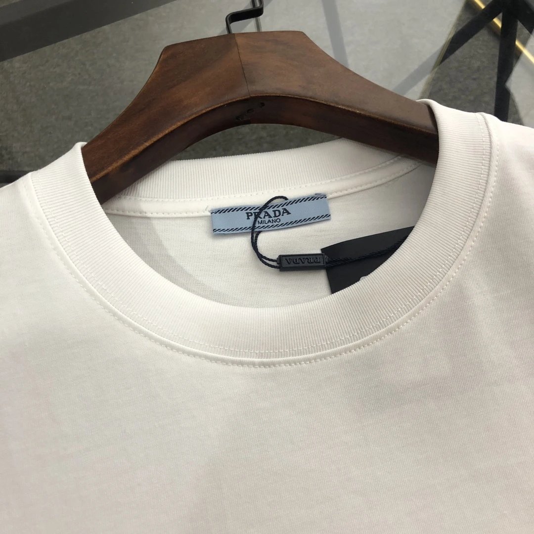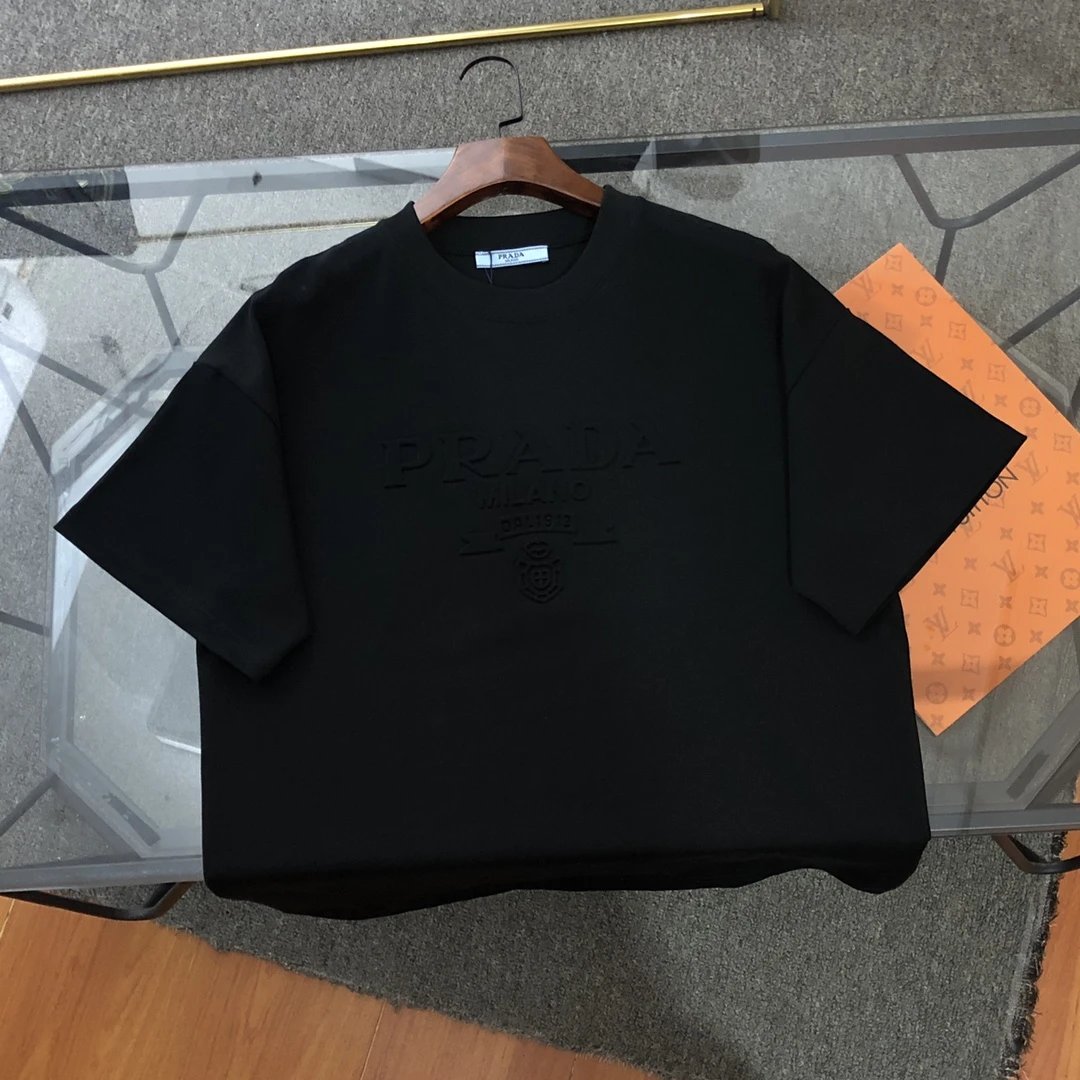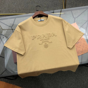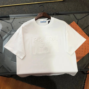 PRADA T-shirt 3D Embossed logo round Neck Short Sleeve25ss New Pure Cotton Unisex Style T Casual T-Shirt Base Layer Shirt OS Loose design