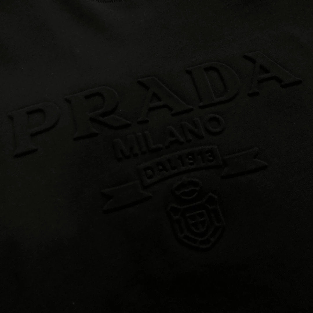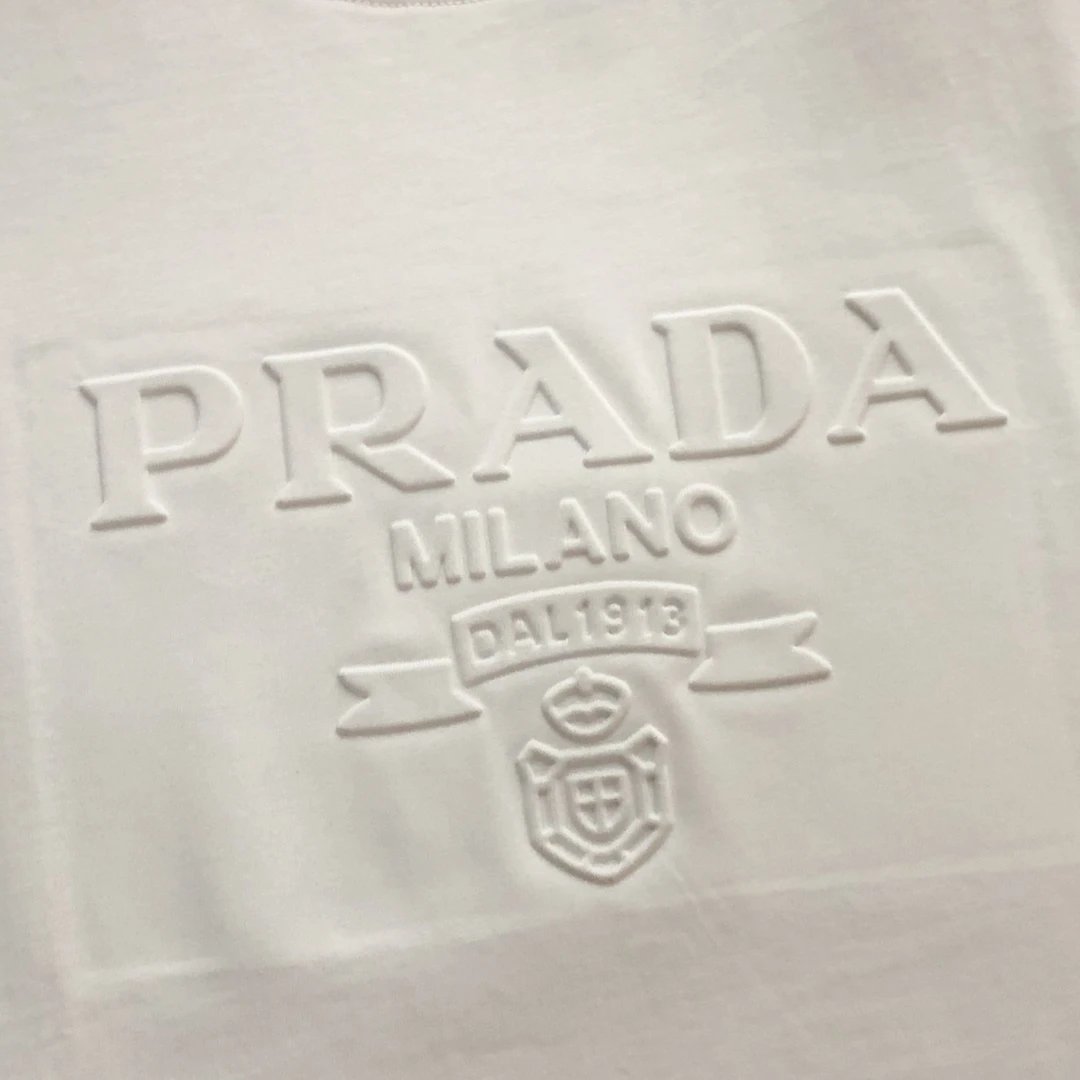 Prada 2025 Spring/Summer New Embossed Logo Crew Neck Short T-Shirt
