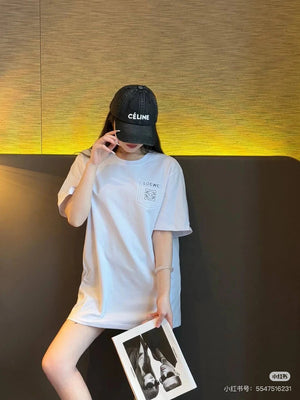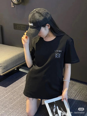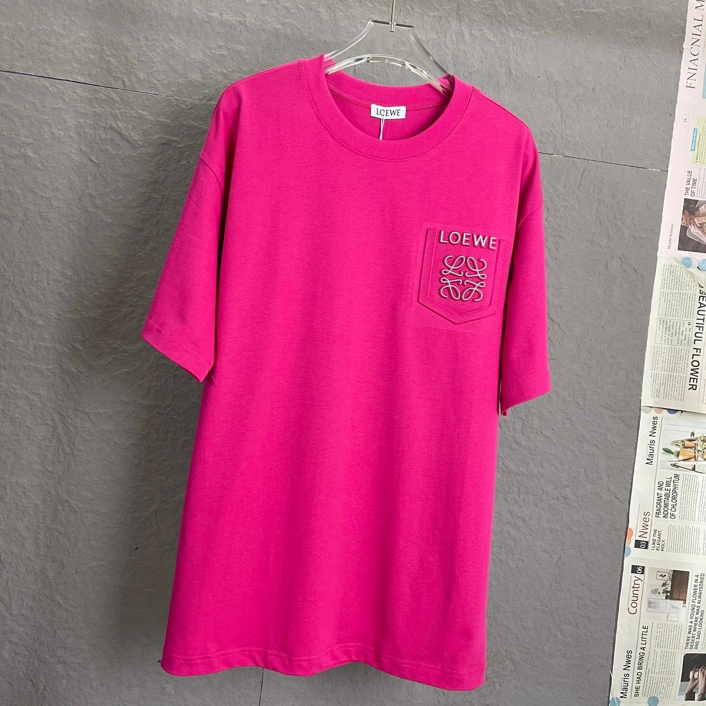 LOEWE T-shirt 3D Embroidered Letter Pattern on Chest logo round Neck Short Sleeve25ss New pure cotton T Unisex T-Shirt OS Drop Shoulder Loose Fit Base Shirt Top T-Shirt Short Sleeve