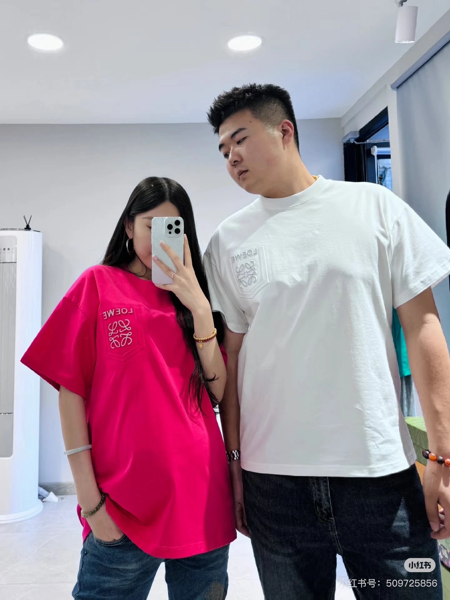 LOEWE Fabric Upgrade 300 Heavy Weight High-End Three-Dimensional Foam Embroidery Craft Exclusive New Product Original Single Men's and Women's Same Casual Loose Design Short Sleeve High-End Custom High-End Version Fashion All-Match Popular Imported Fabric Feel Super Soft and Delicate Wear Skin-Friendly Comfortable High-End Boutique