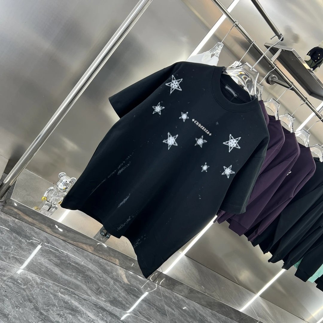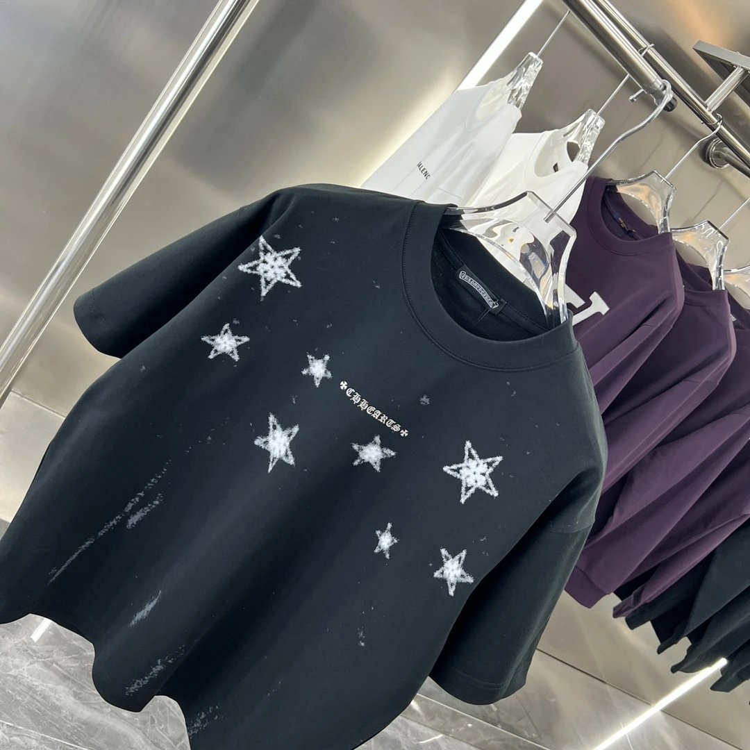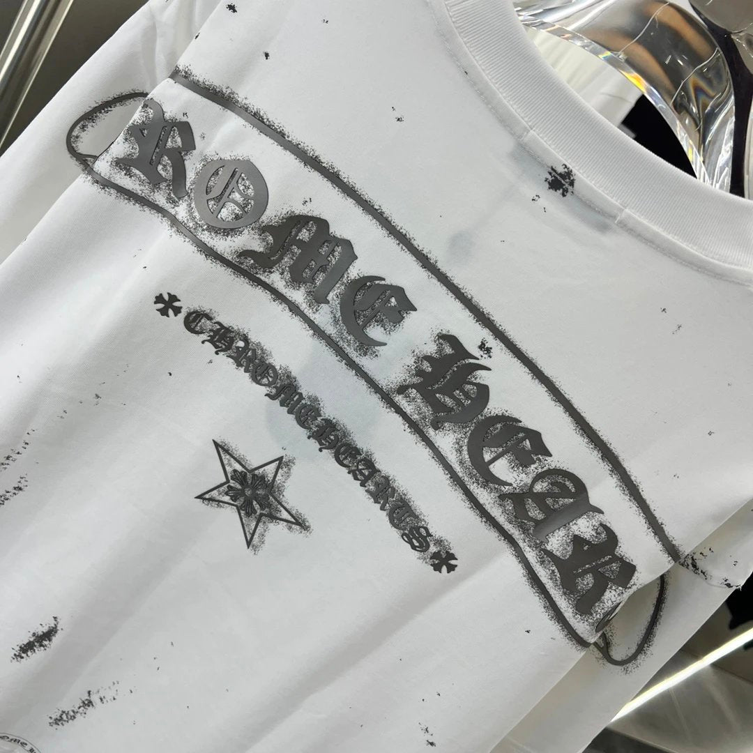 Chrome Hearts T-shirt 3D Silicone Horseshoe logo Round Neck Short Sleeve Pure Cotton Unisex T Shirt Bottoming Shirt OS Loose Fit T-Shirt