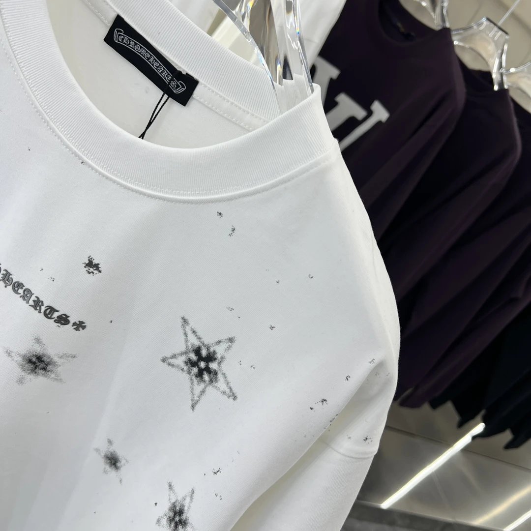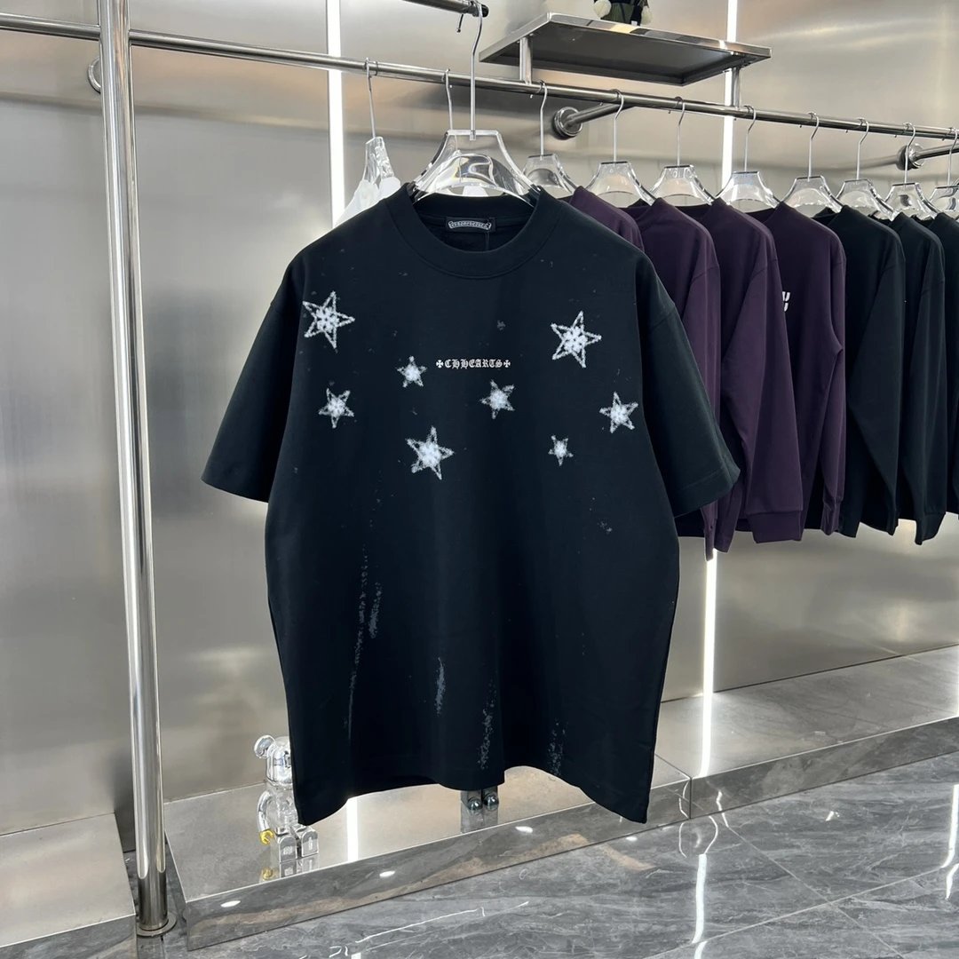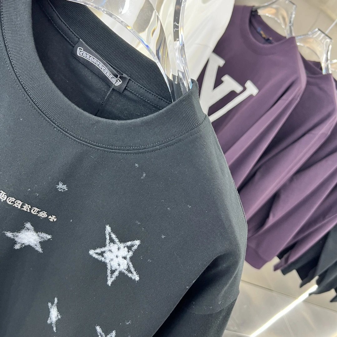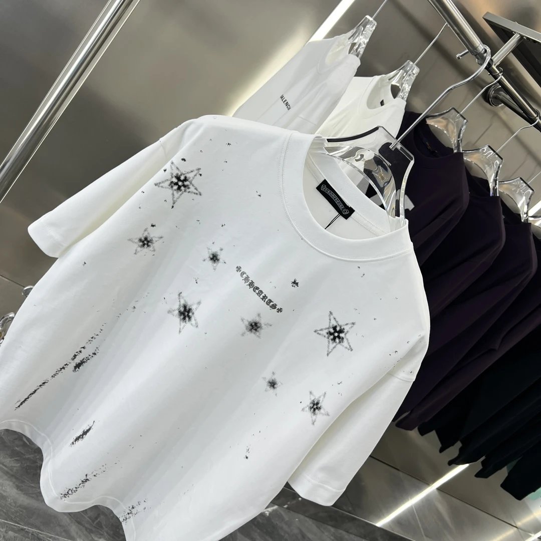 Chrome Hearts T-shirt 3D Silicone Horseshoe logo Round Neck Short Sleeve Pure Cotton Unisex T Shirt Bottoming Shirt OS Loose Fit T-Shirt