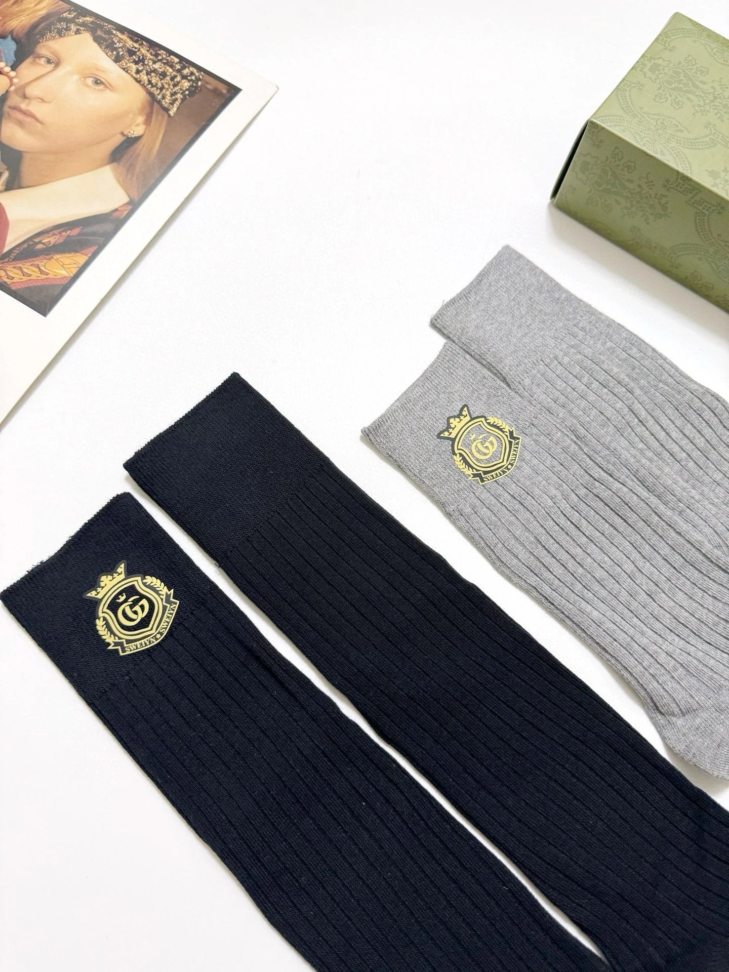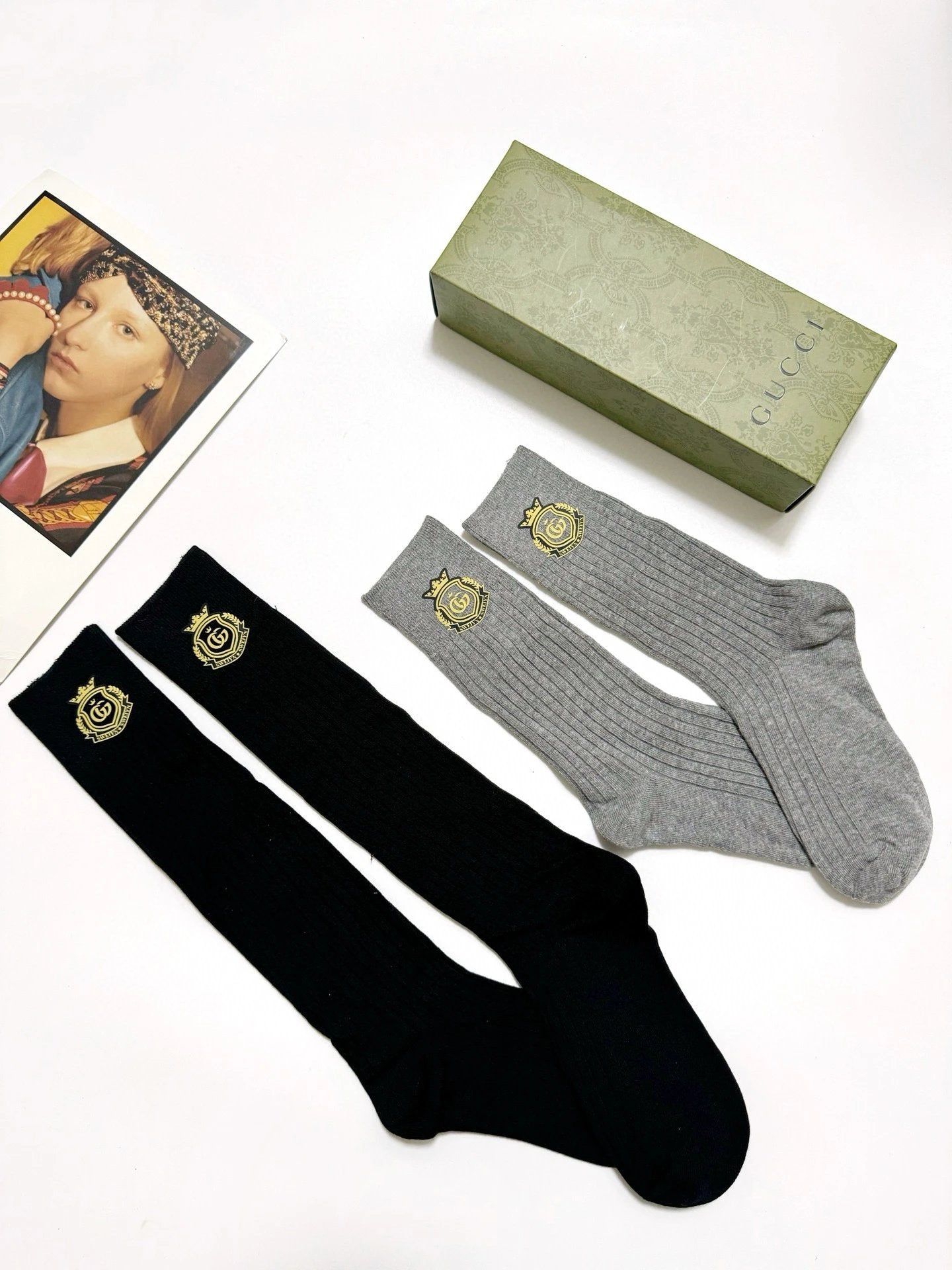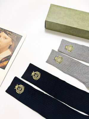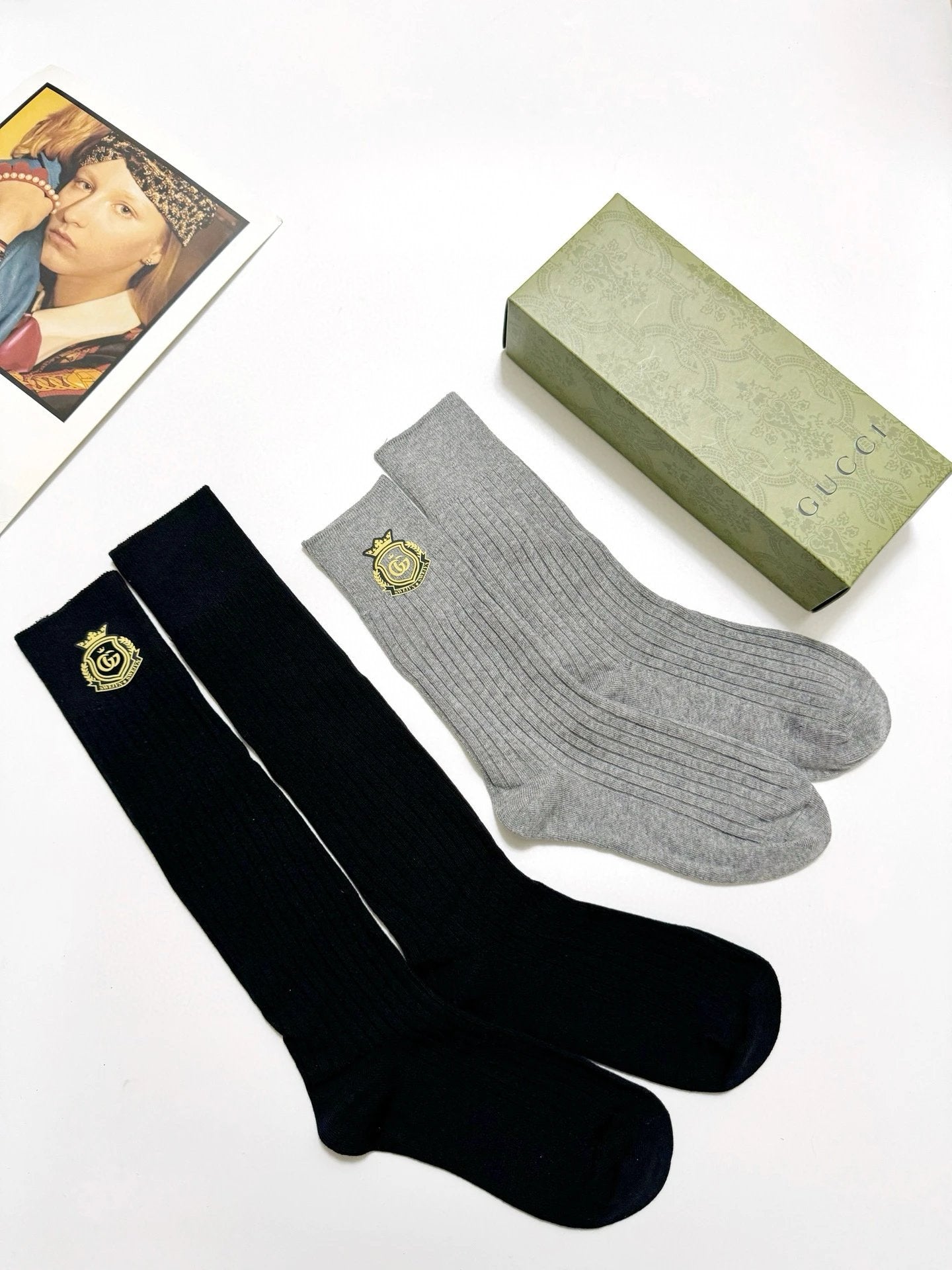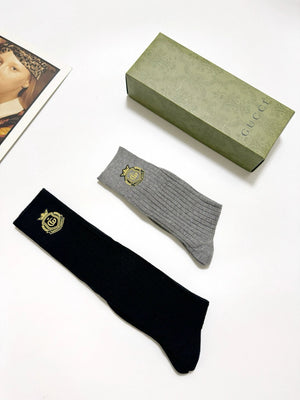 【2 Pairs in One Box】Top Version Guc Gucci Classic Letter Logo Pure Cotton G Home Mid-Calf and Long Socks Breathable Fashion 25ss New Cotton Socks Spring Summer Autumn Thin Business Sports Casual Versatile Deodorant Sweat-Absorbing