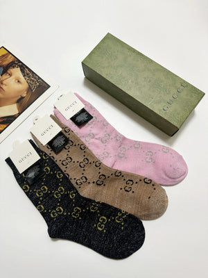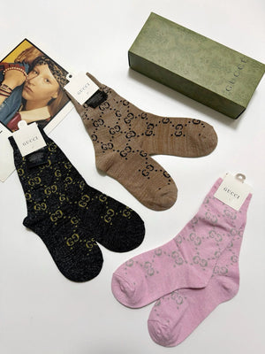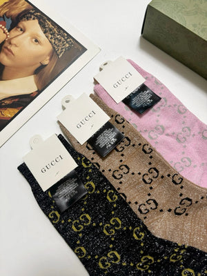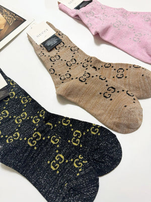 Gucci Hot-Selling Gold and Silver Thread Mid-Calf Socks ? Double Needle Mixed Gold and Silver Thread Material, Perfect Combination, Classic Style, Available in Stores, Must-Have for Trendsetters, Versatile Colors ? Pre-Purchase Instructions