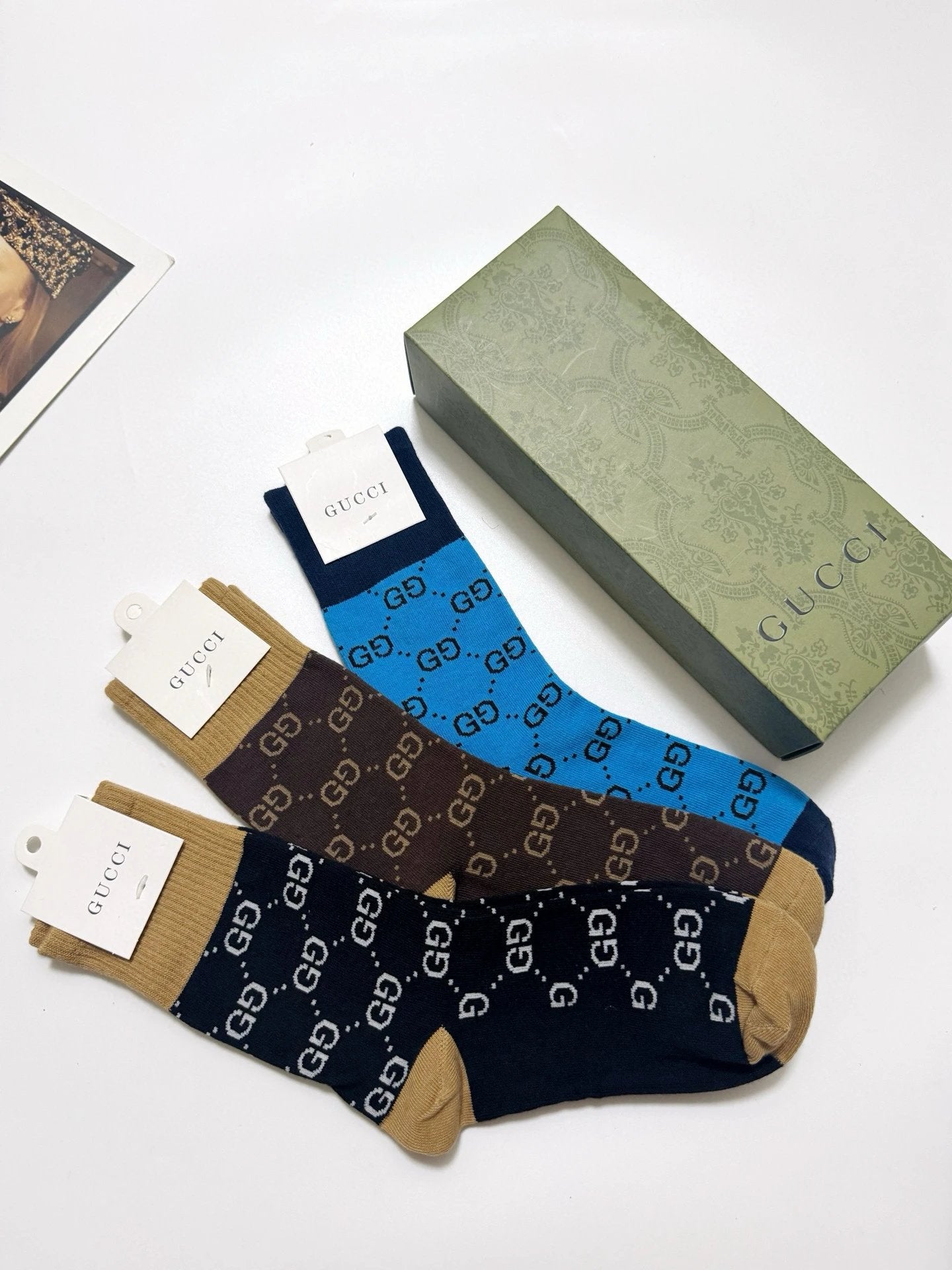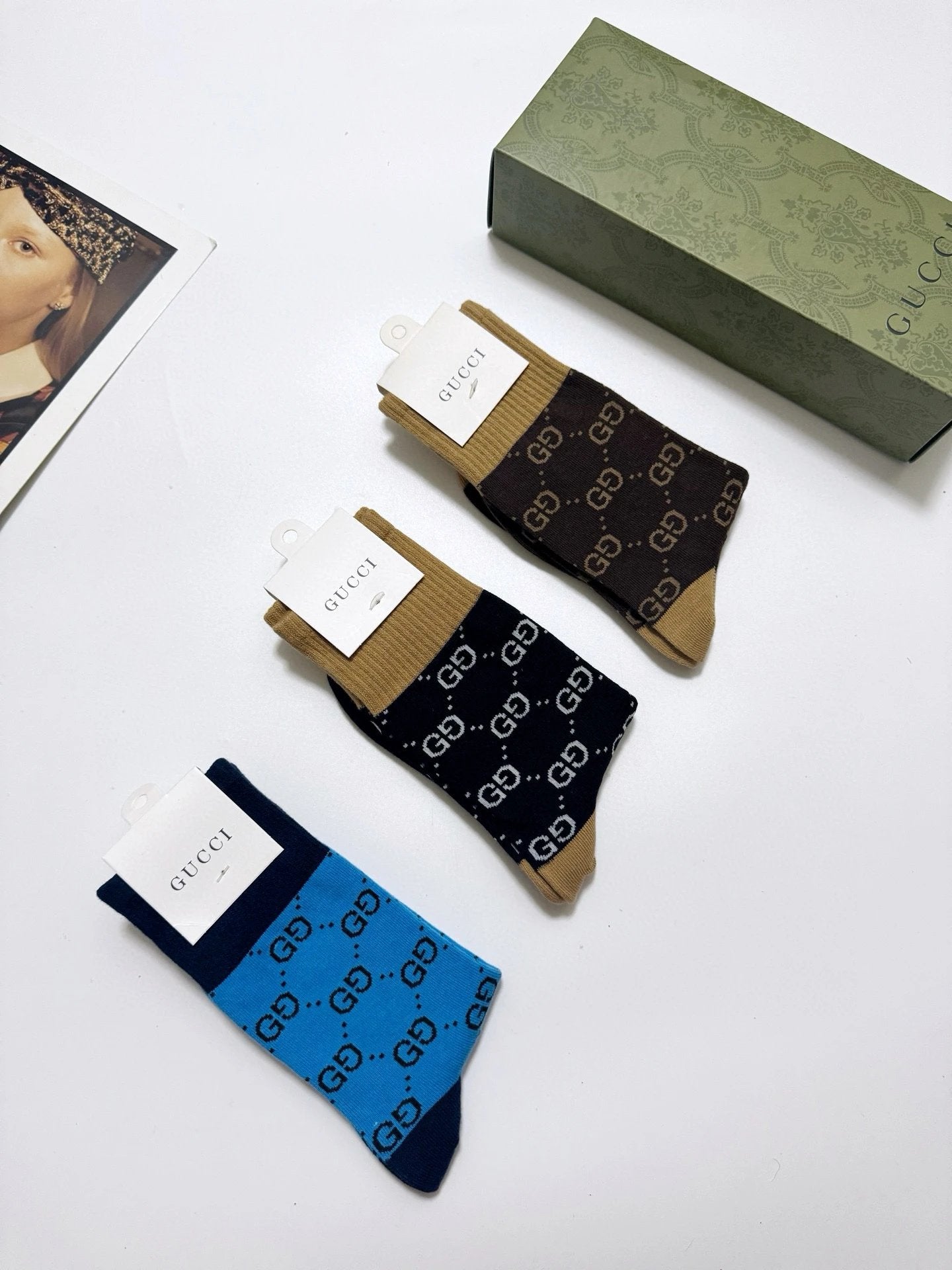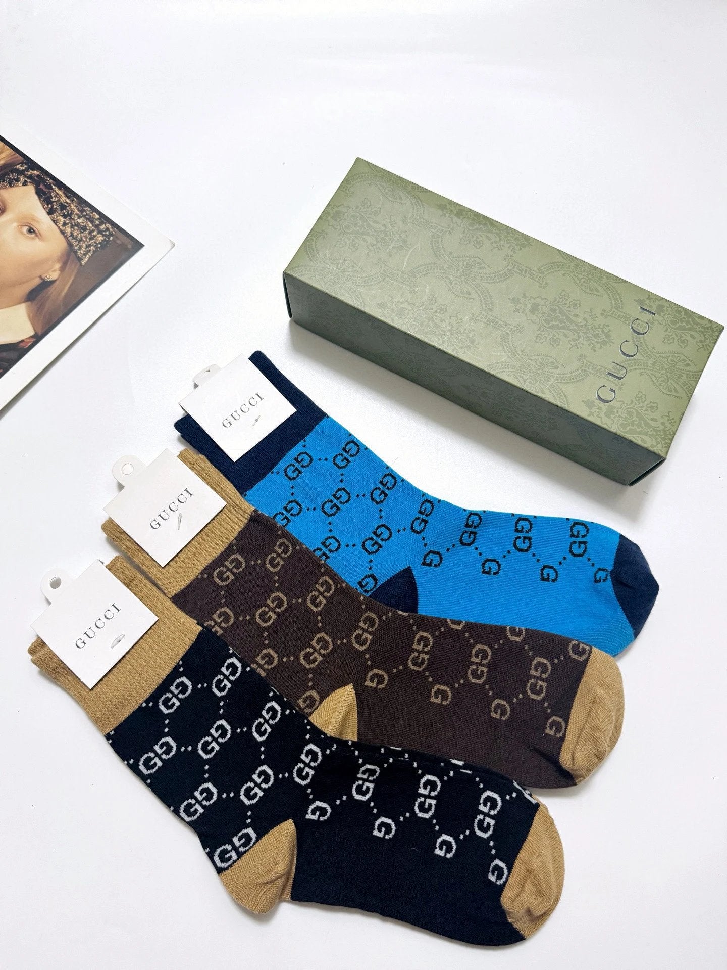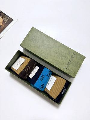 Gucci Sock 【a Box3Double】Classic Letters logo Breathable and Stylish Pure Cotton Mid-Calf Socks25ss New Cotton Socks Spring Summer Autumn Thin Business Sports Casual Versatile Deodorant Sweat-Absorbing