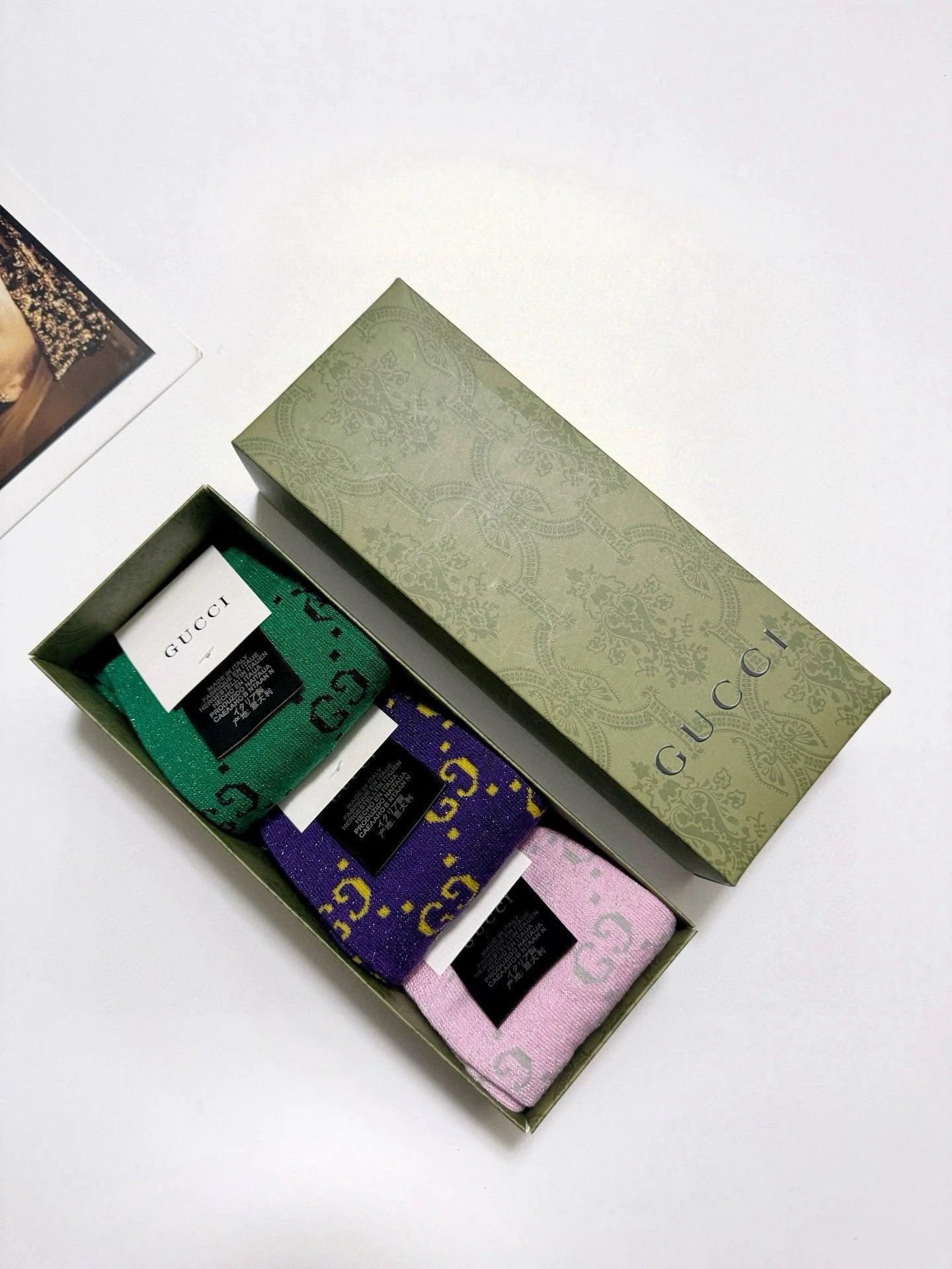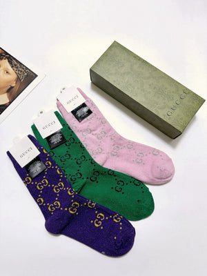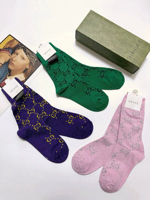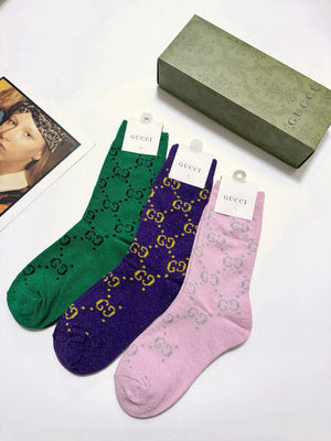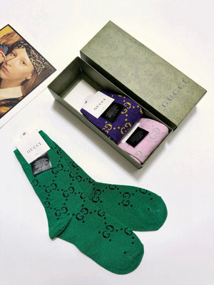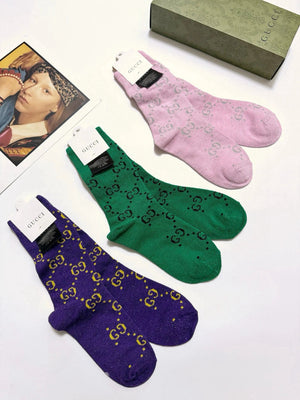 Gucci Sock 【a Box3Double】Full-width Double G Letters logo Breathable and Stylish Pure Cotton Mid-Calf Socks25ss New Cotton Socks Spring Summer Autumn Thin Business Sports Casual Versatile Deodorant Sweat-Absorbing