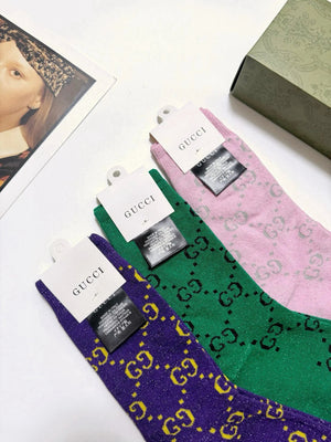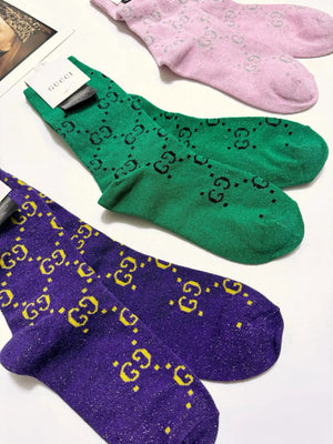 【Gucci Hot-Selling Gold and Silver Thread Mid-Calf Socks? Double Needle Mixed Gold and Silver Thread Material, Perfect Combination, Classic Style, Available in Stores, Must-Have for Trendsetters, Versatile Colors Pre-Purchase Instructions