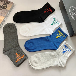 PRADA Sock 【a Box5Double】Classic Letters logo Breathable and Stylish Mid-Calf Cotton Socks25ss New Cotton Socks Spring Summer Autumn Sports Casual Versatile Business Thin Deodorant Sweat-Absorbing