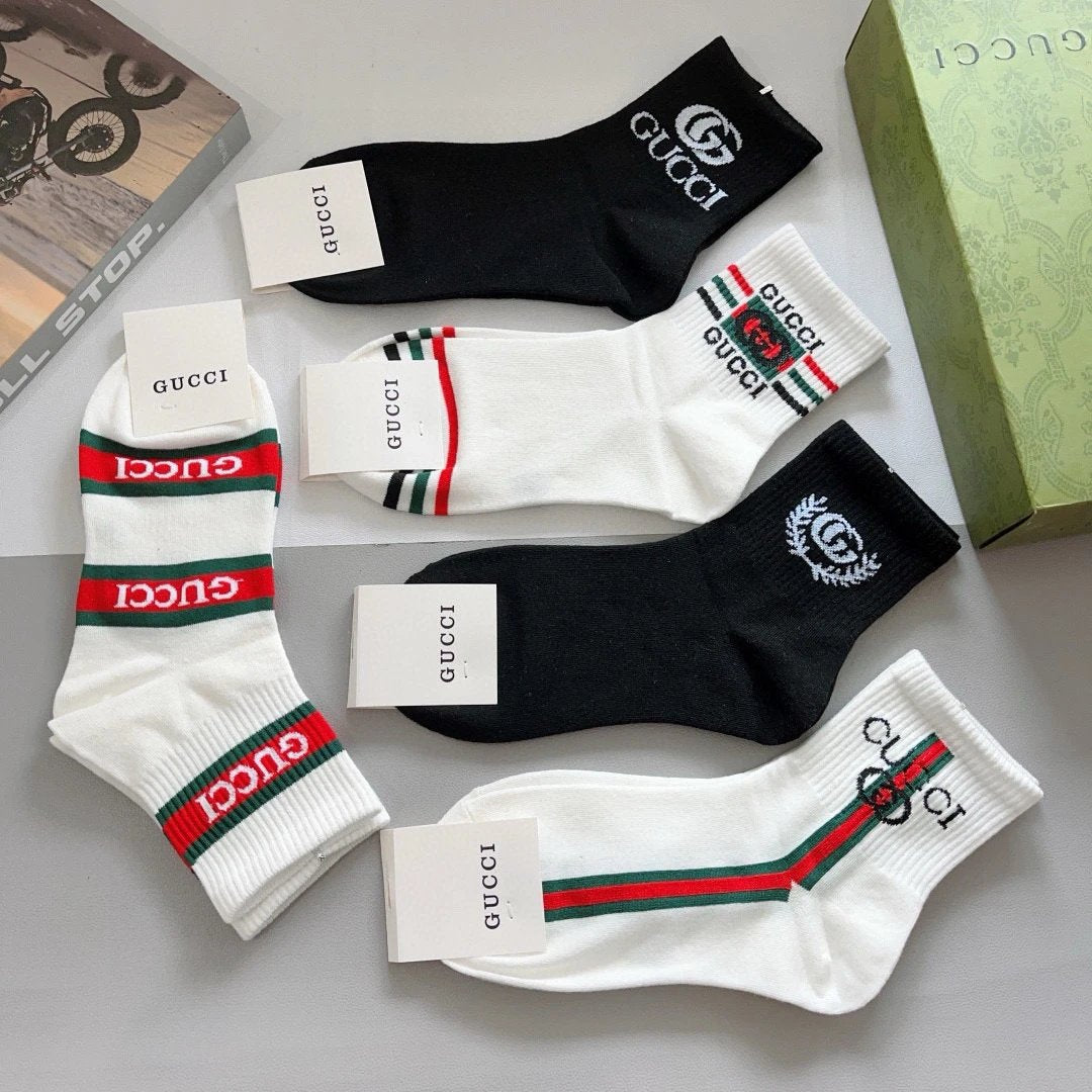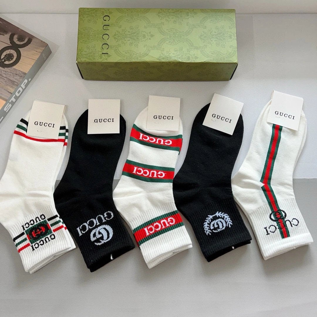 Gucci Sock 【a Box5Double】Classic Letters logo Breathable and Stylish Mid-Calf Cotton Socks25ss New Cotton Socks Thin Business Sports Casual Spring Summer Autumn Versatile Deodorant Sweat-Absorbing