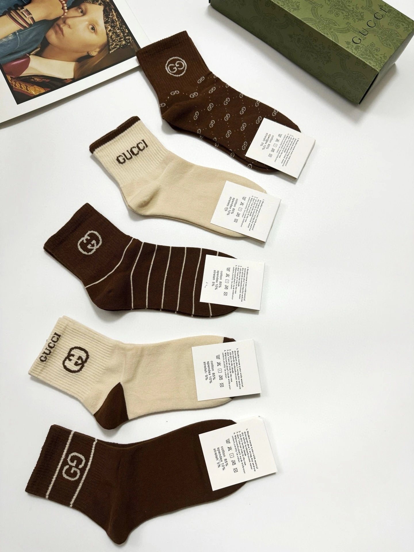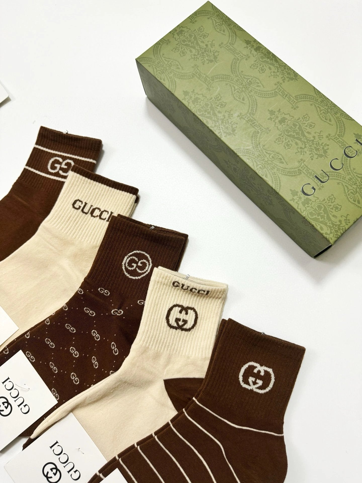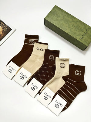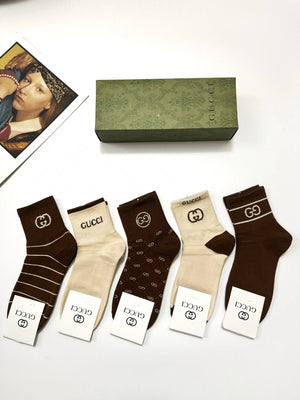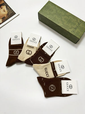 Gucci Sock 【a Box5Double】Classic Letters logo Breathable and Stylish Pure Cotton Mid-Calf Socks25ss New Cotton Socks Spring Summer Autumn Thin Business Sports Casual Versatile Deodorant Sweat-Absorbing