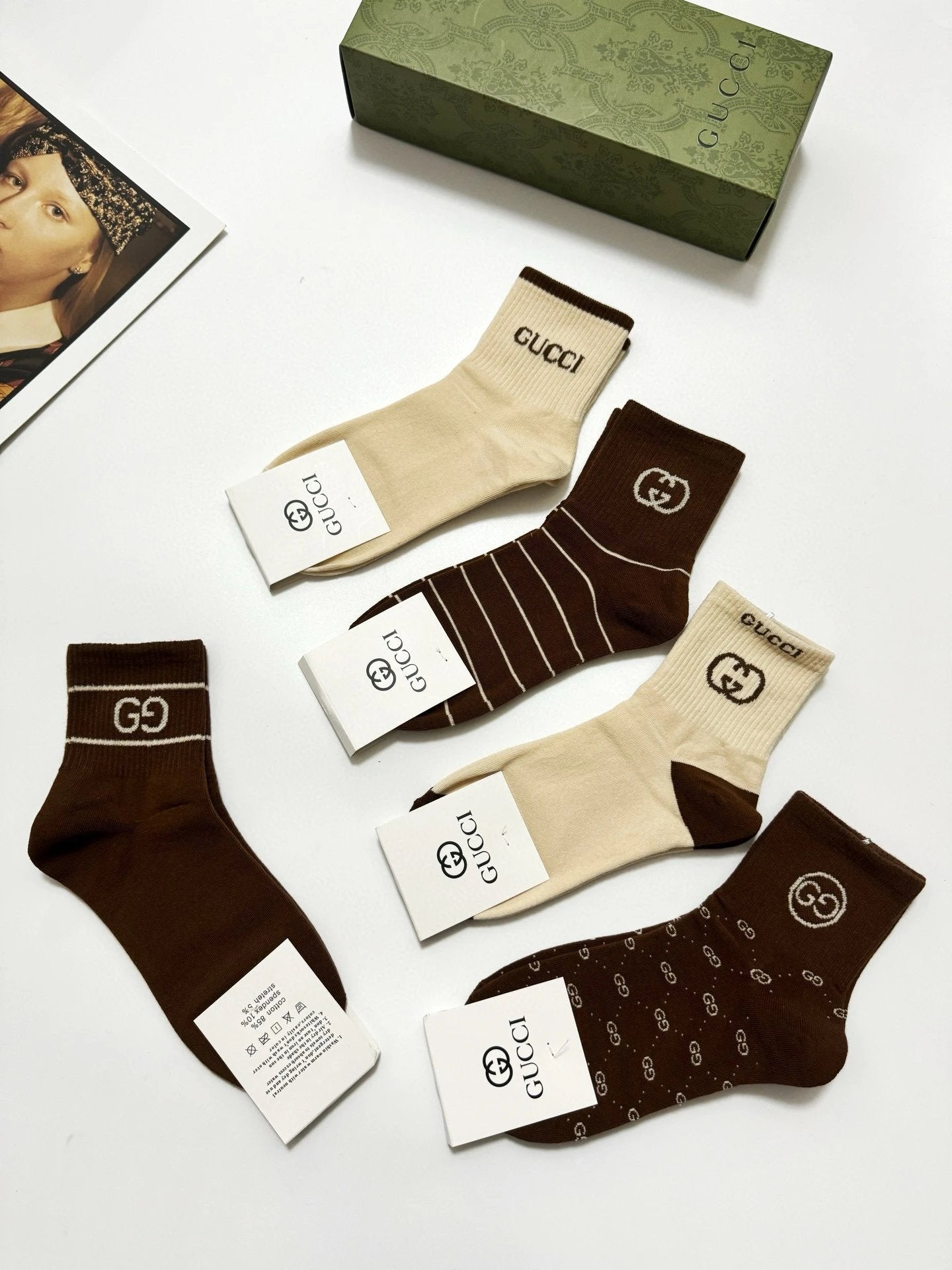 Gucci Classic Letter Logo Pure Cotton Mid-Calf Socks, Super Popular on Instagram, Short Socks, Pure Cotton Fabric, Must-Have for Trendsetters, Classic Color Scheme, Unique Fashion Versatile Style, You Deserve to Own! Pre-Purchase Instructions