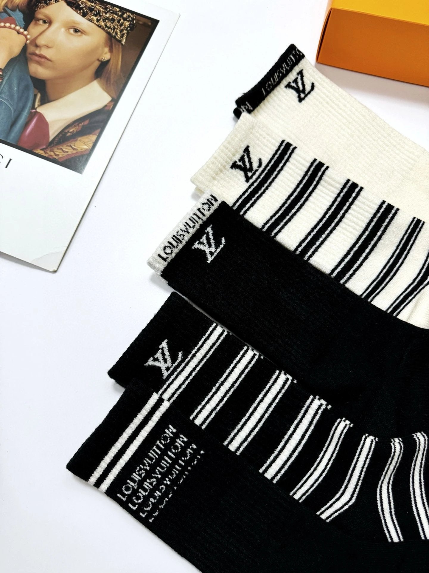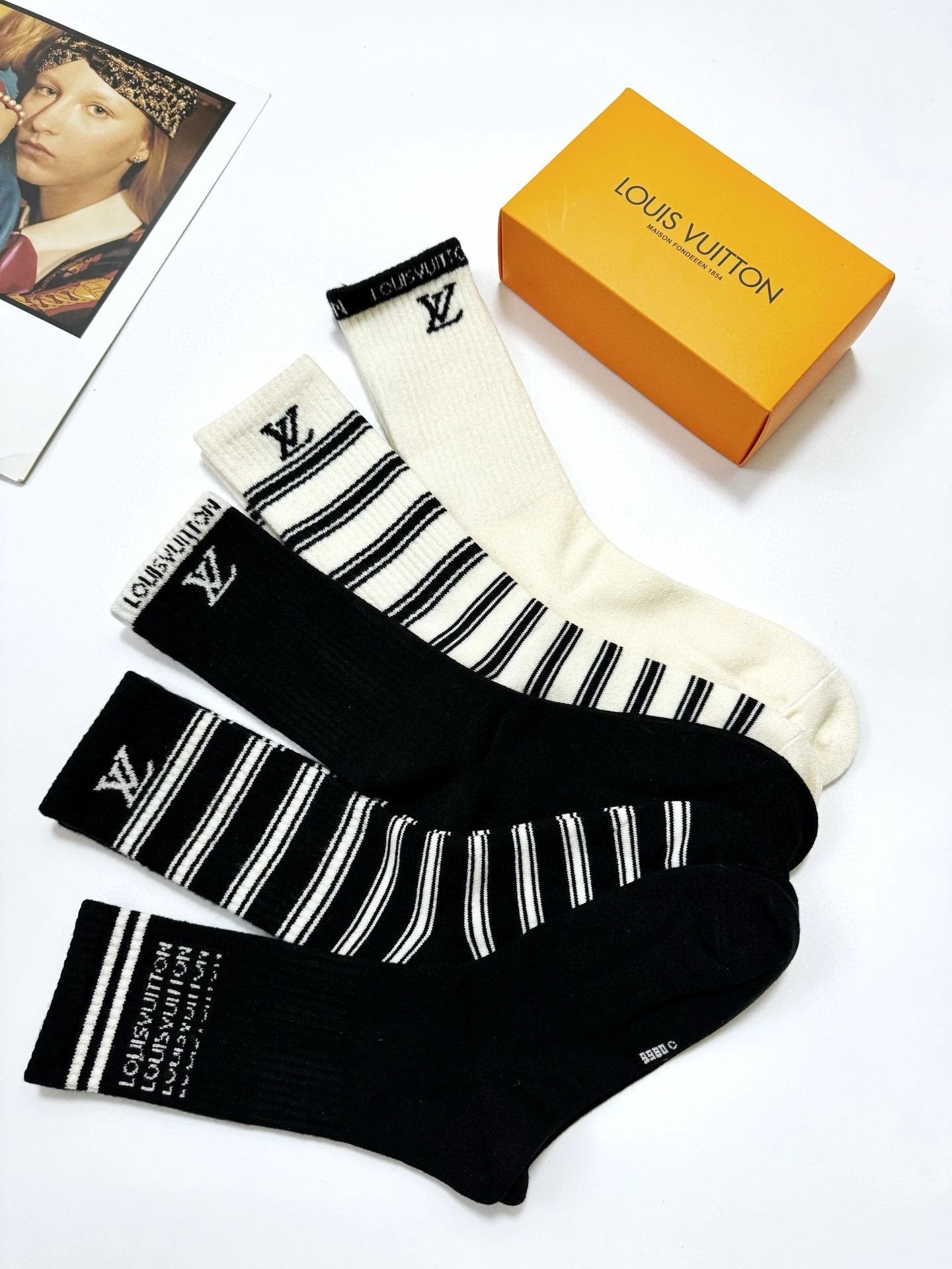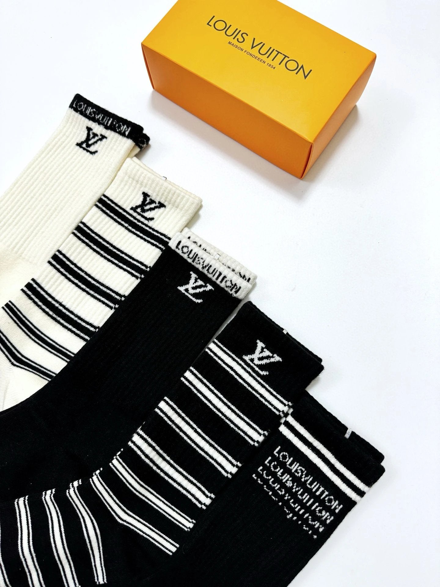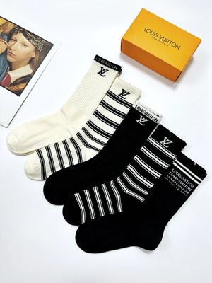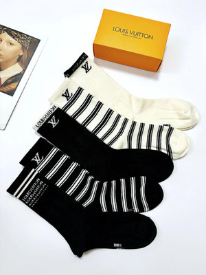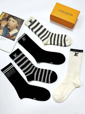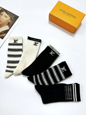 Louis Vuitton LV Sock 【a Box5Double】Classic Letters logo Breathable and Stylish Pure Cotton Mid-Calf Socks25ss New Cotton Socks Thin Business Sports Casual Spring Summer Autumn Versatile Deodorant Sweat-Absorbing