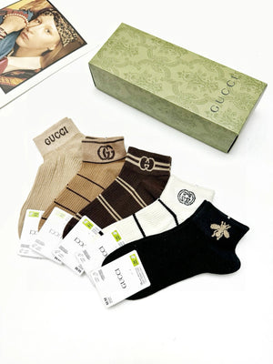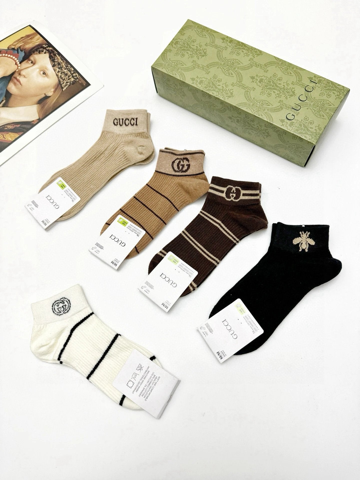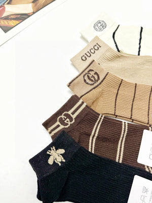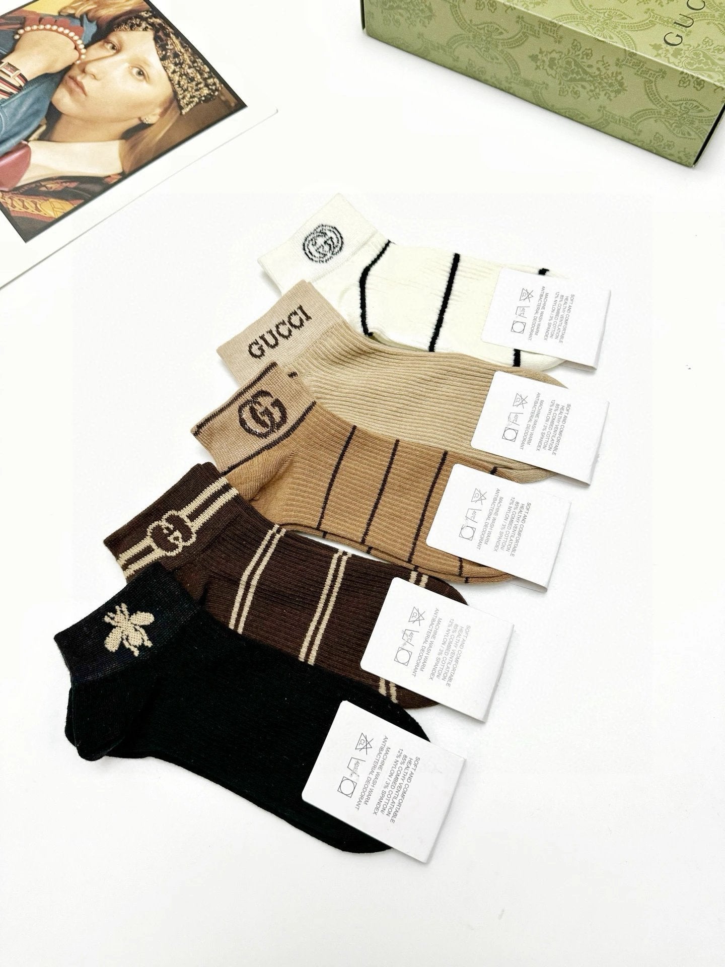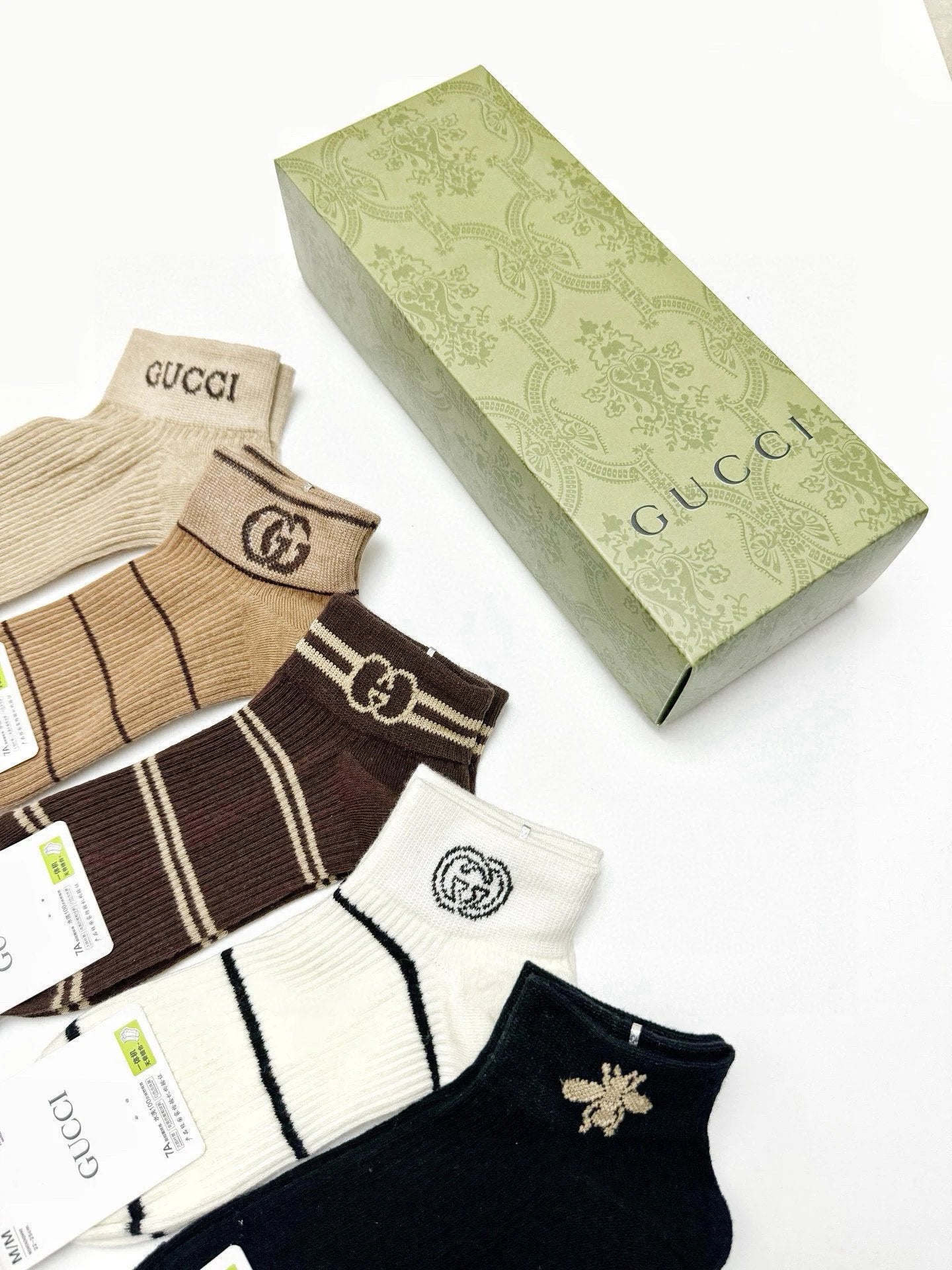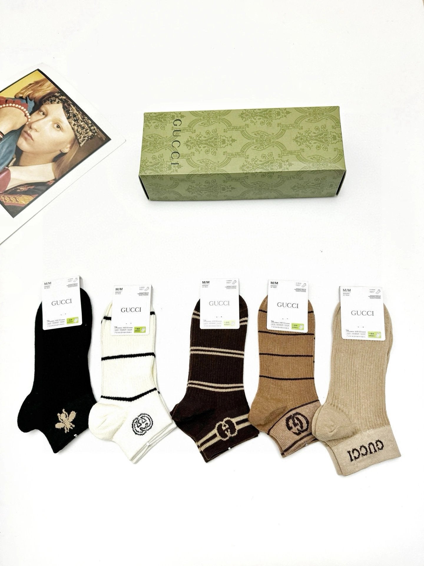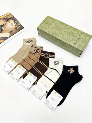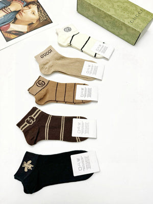 Gucci Sock 【a Box5Double】Classic Letters logo Breathable and stylish pure cotton25ss New Cotton Socks Thin Business Sports Casual Spring Summer Autumn Versatile Deodorant Sweat-Absorbing