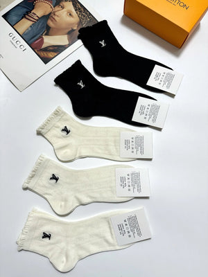 Louis Vuitton Classic Letter Logo Pure Cotton Short Socks, Super Popular on Instagram, Air Conditioning Socks, Pure Cotton Fabric, Must-Have for Trendsetters, Classic Color Scheme, Stylish and Versatile, You Deserve to Own? Pre-Purchase Instructions