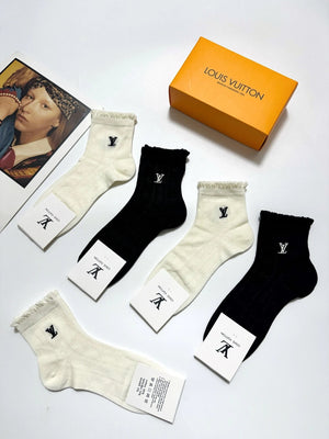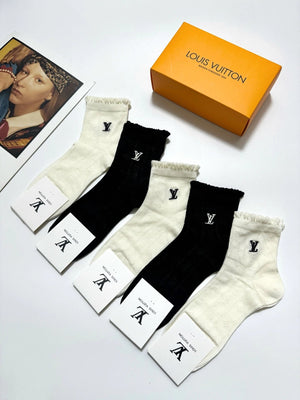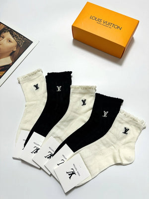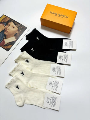Louis Vuitton LV Sock 【a Box5Double】Classic Letters logo Breathable Fashion25ss New Short Cotton Socks Spring Summer Autumn Thin Business Sports Casual Versatile Deodorant Sweat-Absorbing
