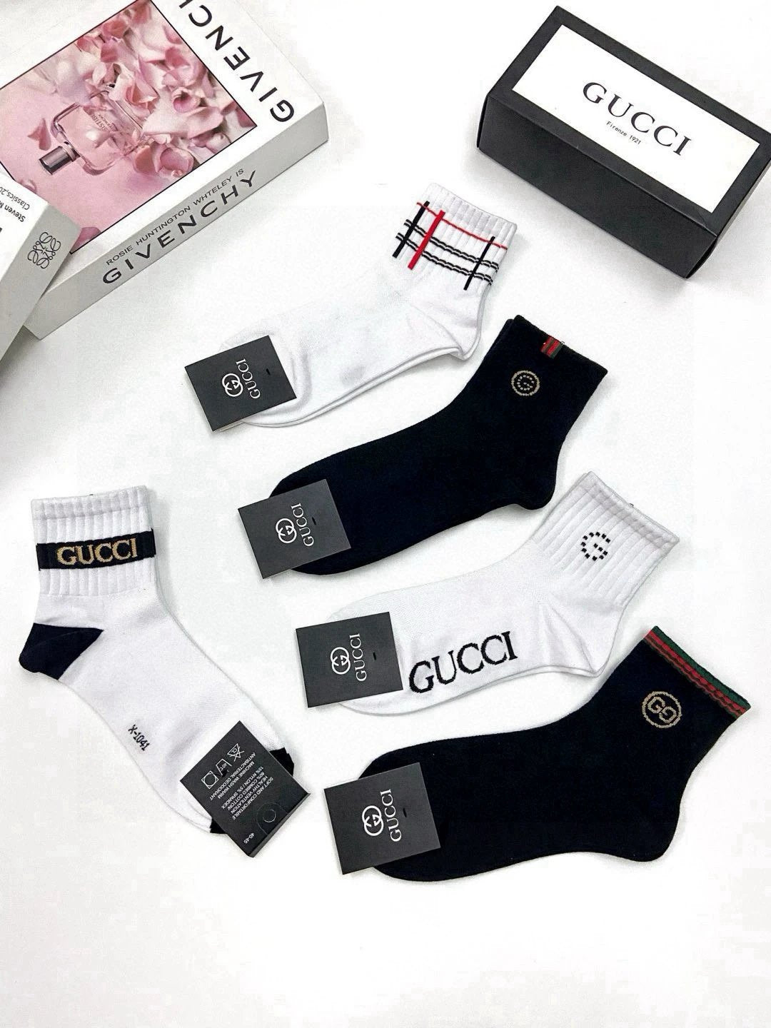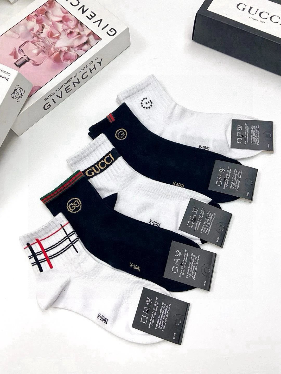 Gucci Sock 【a Box5Double】Classic Letters logo Breathable Fashion25ss New Short Tube Cotton Socks Spring Summer Autumn Sports Casual Versatile Business Thin Deodorant Sweat-Absorbing