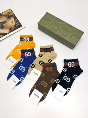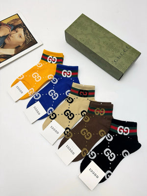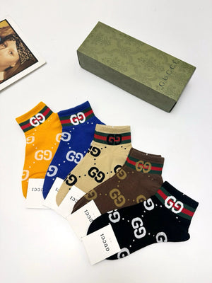 Gucci Sock 【a Box5Double】Classic Letters logo Breathable Fashion25ss New Short Tube Cotton Socks Spring Summer Autumn Sports Casual Versatile Business Thin Deodorant Sweat-Absorbing