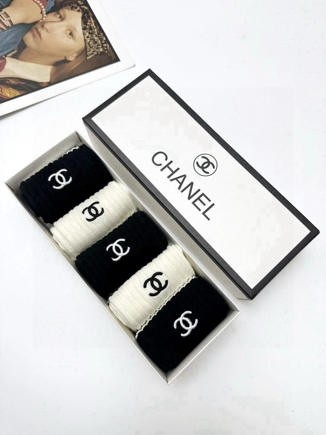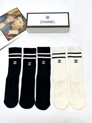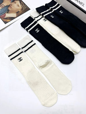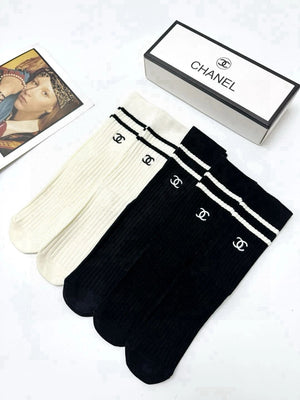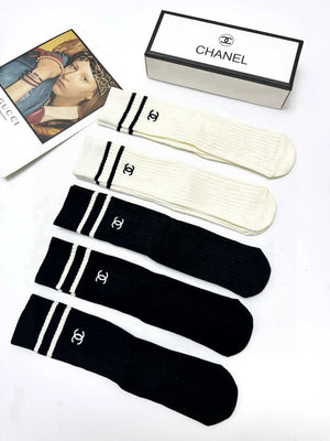 PRADA Sock 【a Box5Double】Classic Letters logo Embroidered Mid-Calf Socks Pure Cotton Breathable Fashion25ss New Cotton Socks Spring Summer Autumn Sports Casual Versatile Business Thin Deodorant Sweat-Absorbing
