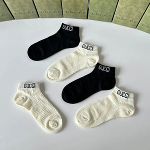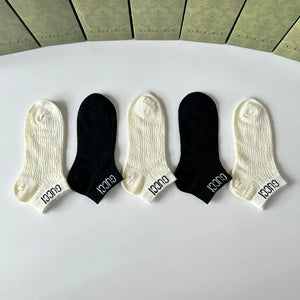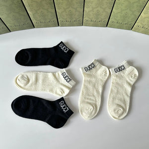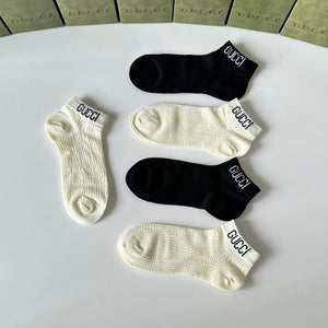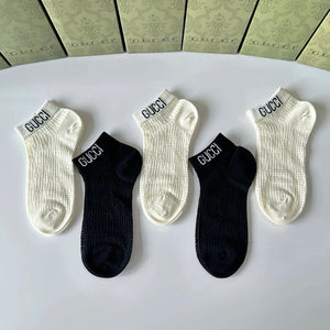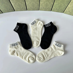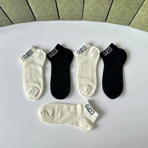 Gucci Sock 【a Box5Double】Classic Letters logo Pure Cotton Mid-Calf Short Tube Socks Breathable Fashionable25ss New Cotton Socks Thin Business Sports Casual Spring Summer Autumn Versatile Deodorant Sweat-Absorbing